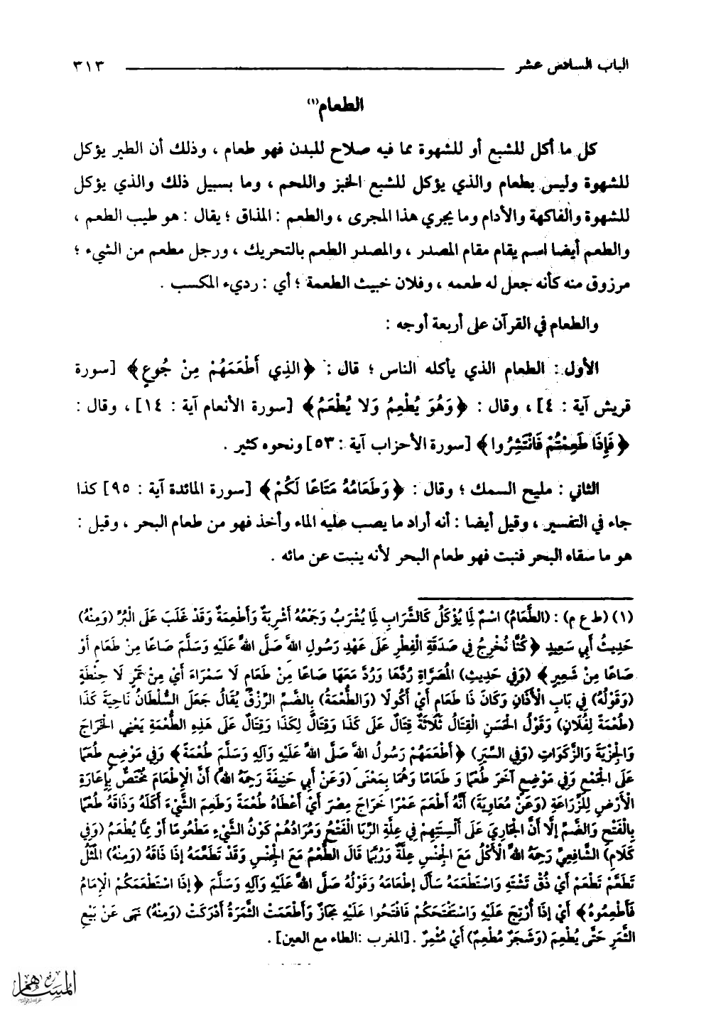 الثاني: مليح السمك؛ وقال: (وَطَعَامُهُ مَتَاعًا لَكُمْ) كذا جاء في التفسير، وقيل أيضا: إنه أراد ما يصب عليه الماء وأخذ فهو من طعام البحر، وقيل: هو ما سقاه البحر فنبت فهو طعام البحر لأنه ينبت عن مائه.