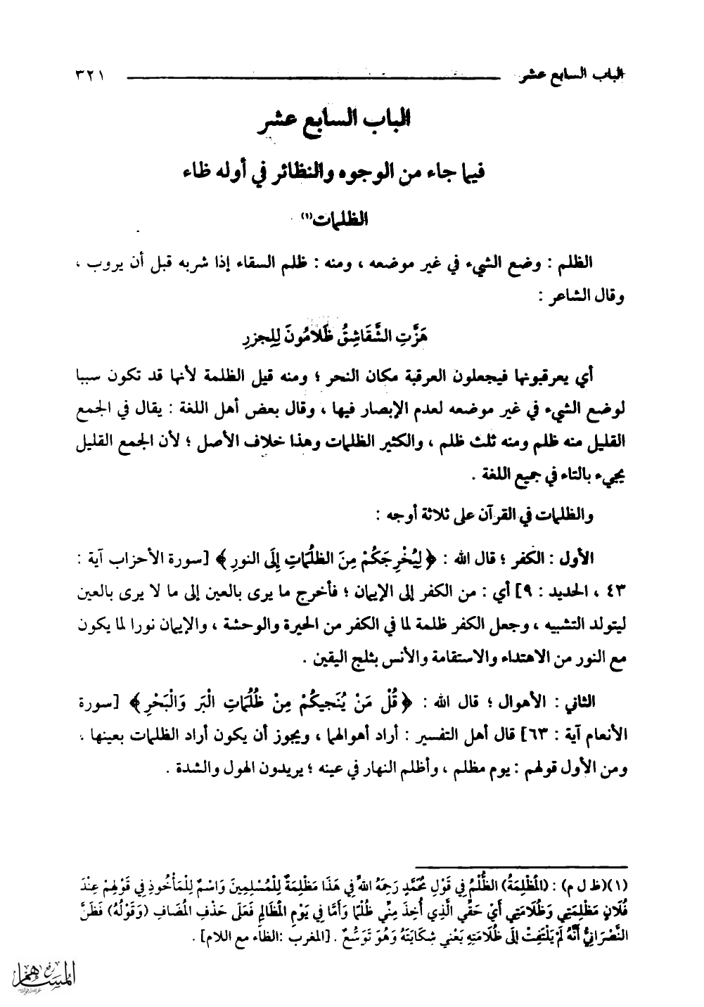 فيما جاء من الوجوه والنظائر في أوله ظاء