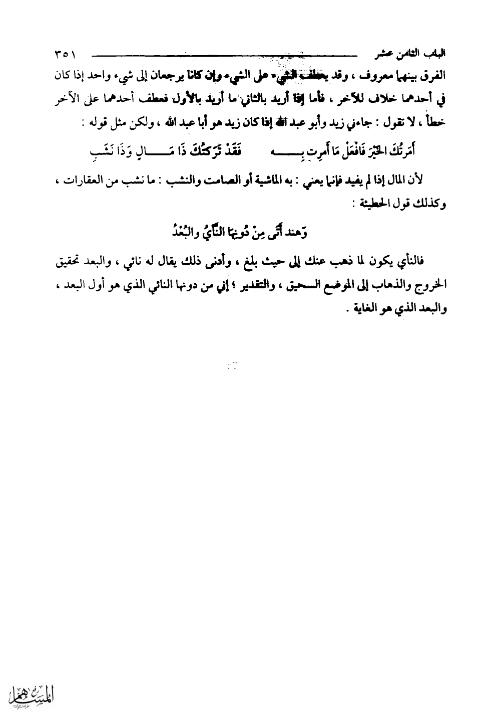 الفرق بينهما معروف، وقد يعطف الشيء على الشيء وإن كانا يرجعان إلى شيء واحد إذا كان في أحدهما خلاف للآخر، فأما إذا أريد بالثاني ما أريد بالأول فعطف أحدهما على الآخر خطأ، لا تقول: جاءني زيد وأبو عبد الله إذا كان زيد هو أبا عبد الله، ولكن مثل قوله: