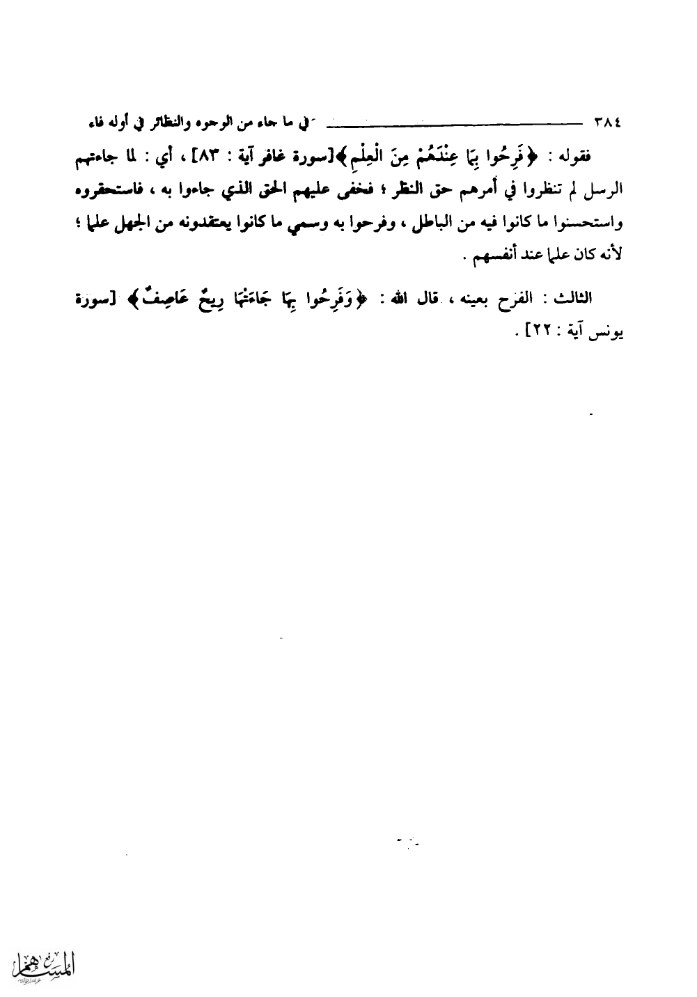 الثالث: الفرح بعينه، قال اللَّه: (وَفَرِحُوا بِهَا جَاءَتْهَا رِيحٌ عَاصِفٌ).