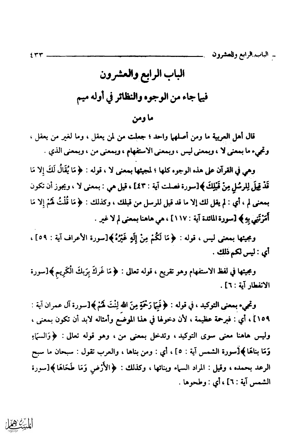 فيما جاء من الوجوه والنظائر في أوله ميم