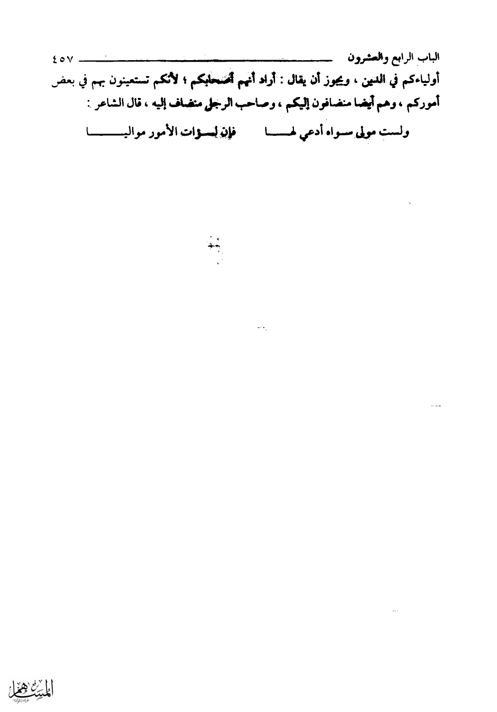 لست بمولى سوأة أدعى لَهَا ... فَإِن لسوآت الْأُمُور مواليا
