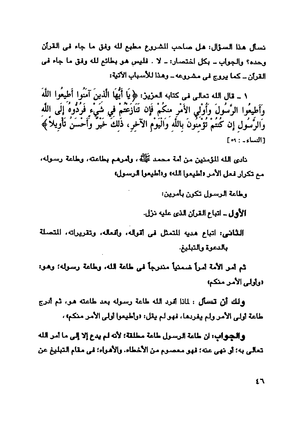 1- قوله تعالى في كتابه العزيز: {يَا أَيُّهَا الَّذِينَ آمَنُوا أَطِيعُوا اللَّهَ وَأَطِيعُوا الرَّسُولَ وَأُولِي الْأَمْرِ مِنْكُمْ فَإِنْ تَنَازَعْتُمْ فِي شَيْءٍ فَرُدُّوهُ إِلَى اللَّهِ وَالرَّسُولِ إِنْ كُنْتُمْ تُؤْمِنُونَ بِاللَّهِ وَالْيَوْمِ الْآخِرِ ذَلِكَ خَيْرٌ وَأَحْسَنُ تَأْوِيلًا} [النساء: 59]