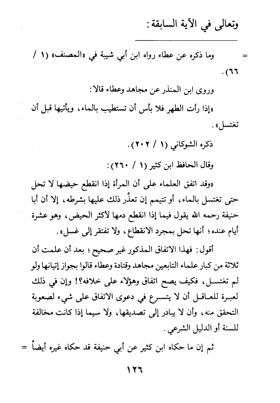أقول: فهذا الاتفاق المذكور غير صحيح بعد أن علمت أن ثلاثة من كبار علماء التابعين مجاهد وقتادة وعطاء قالوا بجواز إتيانها ولو لم تغتسل فكيف يصح اتفاق وهؤلاء على خلافه؟! وإن في ذلك لعبرة للعاقل أن لا يتسرع في دعوى الاتفاق على شيء لصعوبة التحقق منه وأن لا يبادر إلى تصديقها ولا سيما إذا كانت مخالفة للسنة أو الدليل الشرعي.