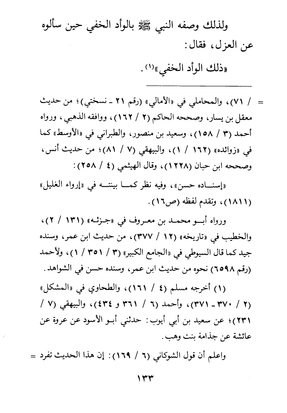 ولذلك وصفه النبي صلى الله عليه وسلم بالوأد الخفي حين سألوه عن العزل فقال: