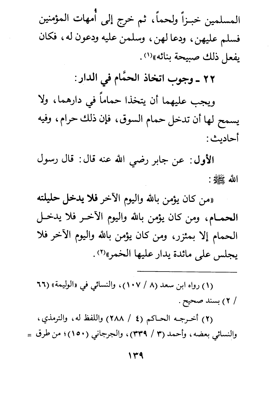 22- وجوب اتخاذ الحمام في الدار: