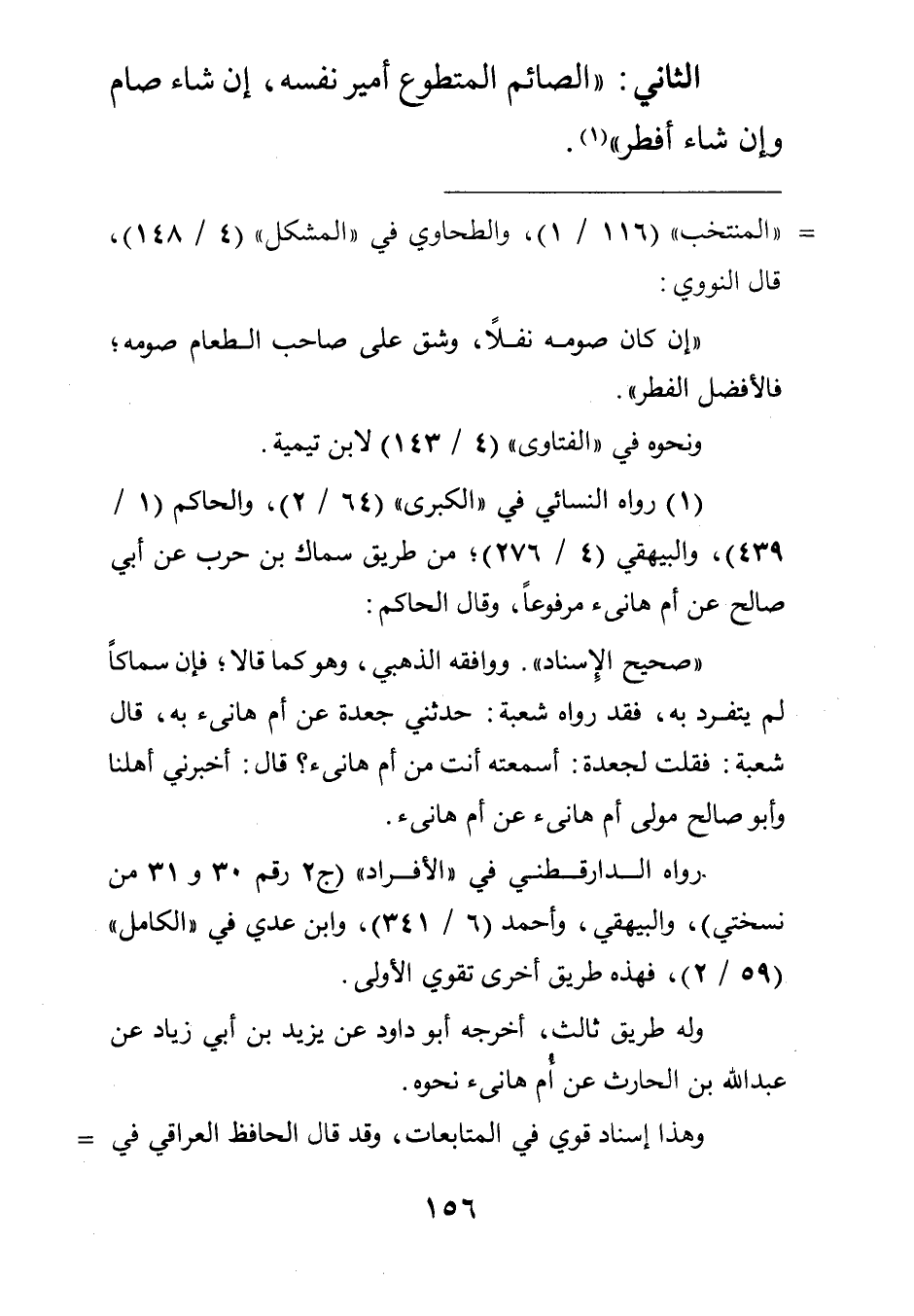 الثاني: "الصائم المتطوع أمير نفسه إن شاء صام وإن شاء أفطر" 1.