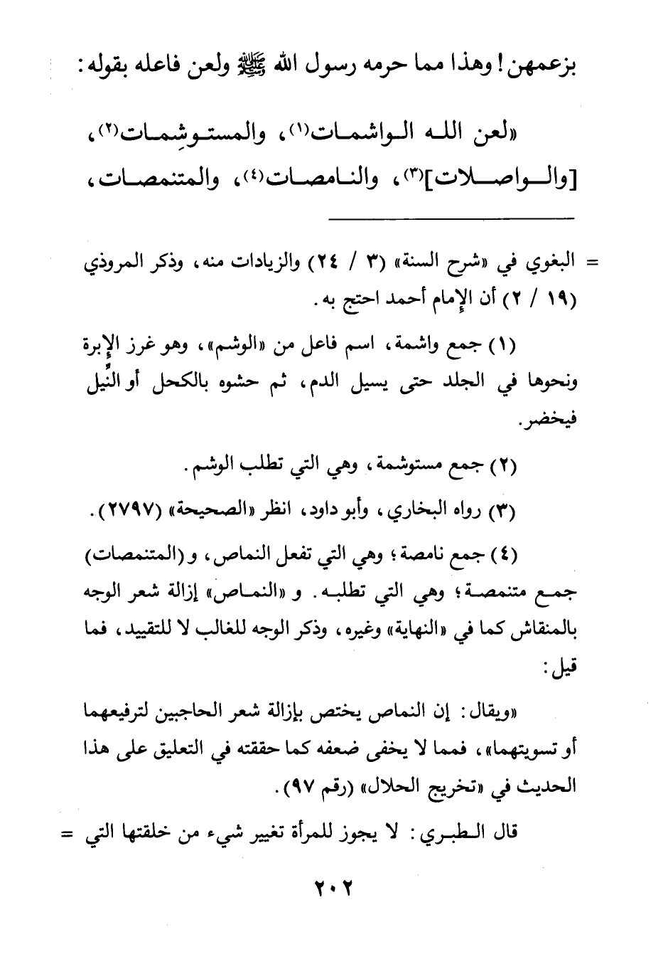 "لعن الله الواشمات1 والمستوشمات2 [[والواصلات3] والنامصات4 [والمتنمصات,