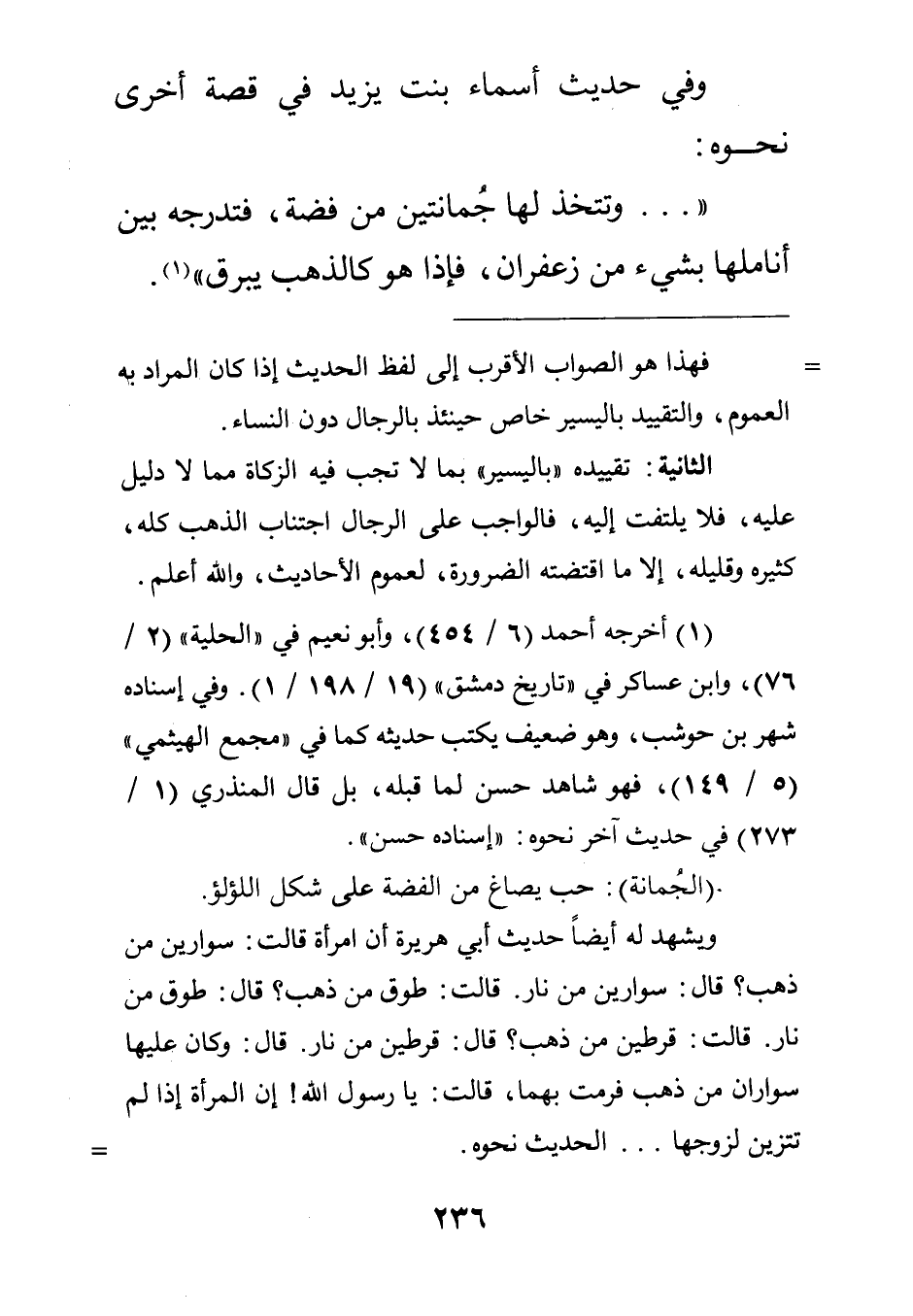 ويشهد له أيضا حديث أبي هريرة أن امرأة قالت: سوارين من ذهب؟ فقال: "سوارين من نار". قالت: طوق من ذهب. قال: "طوق من نار". قالت: قرطين من ذهب؟ قال: "قرطين من نار". قال وكان عليها سواران من ذهب فرمت بهما قالت: يا رسول الله! إن المرأة إذا لم تتزين لزوجها ... الحديث نحوه.