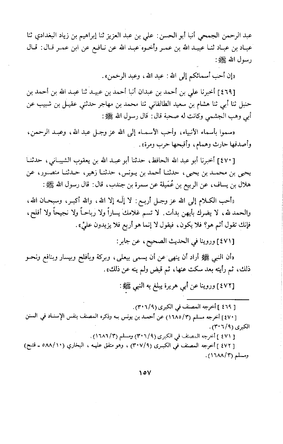 378 - أَخْبَرَنَا أَبُو عَبْدِ اللَّهِ الْحَافِظُ، حَدَّثَنَا أَبُو عَبْدِ اللَّهِ بْنُ يَعْقُوبَ الشَّيْبَانِيُّ، حَدَّثَنَا يَحْيَى بْنُ مُحَمَّدِ بْنِ يَحْيَى، حَدَّثَنَا أَحْمَدُ بْنُ يُونُسَ، حَدَّثَنَا زُهَيْرٌ، حَدَّثَنَا مَنْصُورٌ، عَنْ هِلَالِ بْنِ يَسَافٍ، عَنِ الرَّبِيعِ بْنِ عُمَيْلَةَ، عَنْ سَمُرَةَ بْنِ جُنْدُبٍ قَالَ: قَالَ رَسُولُ اللَّهِ صَلَّى اللَّهُ عَلَيْهِ وَسَلَّمَ: " §أَحَبُّ الْكَلَامِ إِلَى اللَّهِ عَزَّ وَجَلَّ: لَا إِلَهَ إِلَّا اللَّهُ، وَاللَّهُ أَكْبَرُ، وَسُبْحَانَ اللَّهِ، وَالْحَمْدُ لِلَّهِ، لَا يَضُرُّكَ بِأَيِّهِمَا بَدَأْتَ لَا تُسَمِّ غُلَامَكَ يَسَارًا وَلَا رَبَاحًا وَلَا نَجِيحًا وَلَا أَفْلَحَ، فَإِنَّكَ تَقُولُ أَثَمَّ هُوَ، فَلَا يَكُونُ، فَيَقُولُ لَا إِنَّمَا هُوَ أَرْبَعٌ فَلَا يَزِيدَنَّ عَلَيَّ ". وَرُوِّينَا فِي الْحَدِيثِ الصَّحِيحِ، عَنْ جَابِرٍ: «أَنَّ النَّبِيَّ صَلَّى اللَّهُ عَلَيْهِ وَسَلَّمَ أَرَادَ أَنْ يَنْهَى عَنْ أَنْ يُسَمَّى بِيَعْلَى، وَبَرَكَةَ وَبِأَفْلَحَ وَبِيَسَارٍ وَبِنَافِعٍ وَنَحْوِ ذَلِكَ، ثُمَّ رَأَيْتُهُ بَعْدُ سَكَتَ عَنْهَا، ثُمَّ قُبِضَ وَلَمْ يَنْهَ عَنْ ذَلِكَ» . وَرُوِّينَا عَنْ أَبِي هُرَيْرَةَ، يَبْلُغُ بِهِ النَّبِيَّ صَلَّى اللَّهُ عَلَيْهِ وَسَلَّمَ: -[158]- «أَخْنَعُ اسْمٍ عِنْدَ اللَّهِ يَوْمَ الْقِيَامَةِ رَجُلٌ يُدْعَى مَالِكَ الْأَمْلَاكِ، لَا مَالِكَ إِلَّا اللَّهُ»