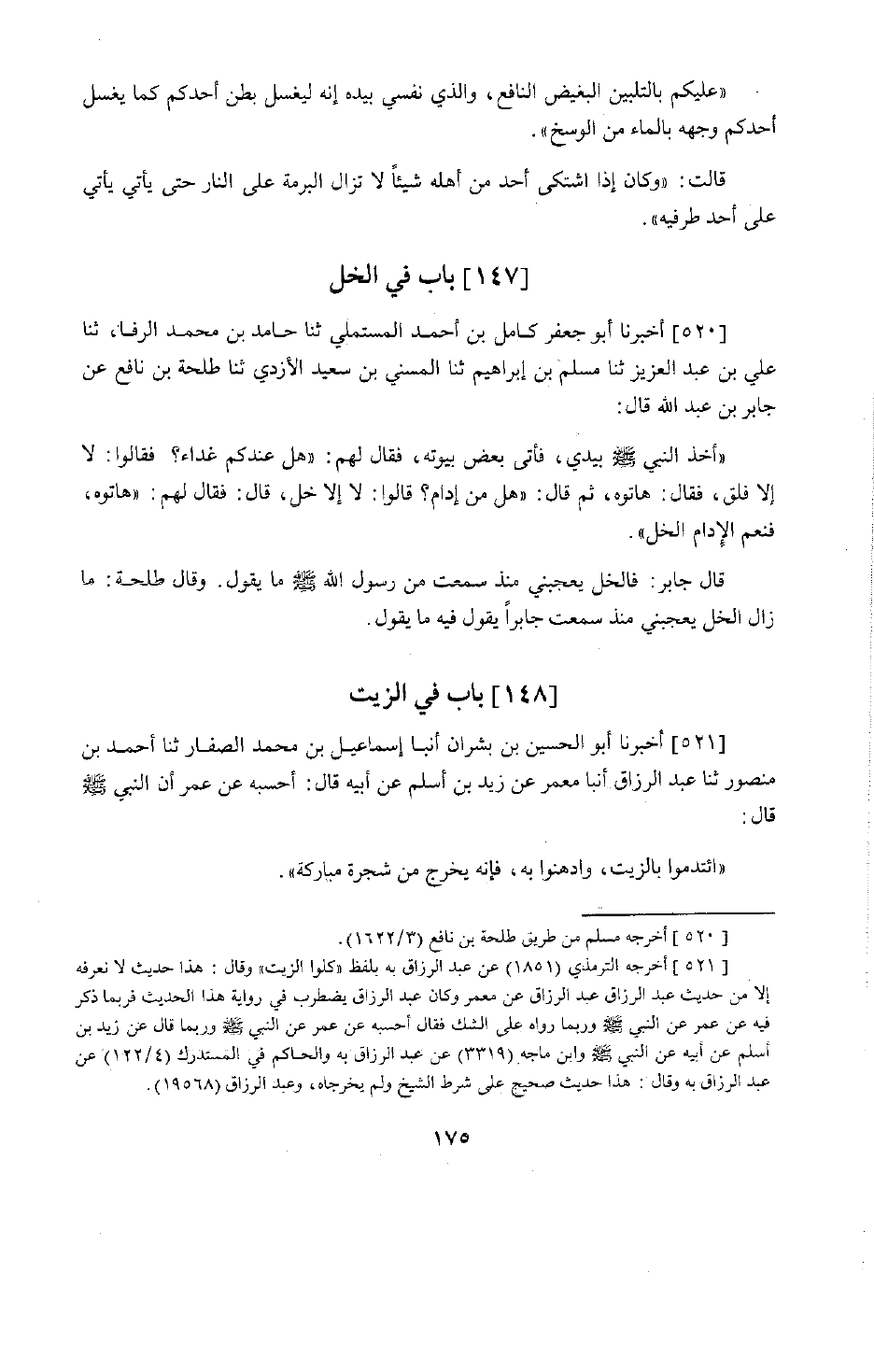 425 - أَخْبَرَنَا أَبُو الْحُسَيْنِ بْنُ بِشْرَانَ، أَنْبَأَنَا إِسْمَاعِيلُ بْنُ مُحَمَّدٍ الصَّفَّارُ، حَدَّثَنَا أَحْمَدُ بْنُ مَنْصُورٍ، حَدَّثَنَا عِيسَى، أَنْبَأَنَا مَعْمَرٌ، عَنْ زَيْدِ بْنِ أَسْلَمَ، عَنْ أَبِيهِ قَالَ: أَحْسِبُهُ عَنْ عُمَرَ أَنَّ النَّبِيَّ صَلَّى اللَّهُ عَلَيْهِ وَسَلَّمَ قَالَ: «§ائْتَدِمُوا بِالزَّيْتِ، وَادَّهِنُوا بِهِ فَإِنَّهُ يَخْرُجُ مِنْ شَجَرَةٍ مُبَارَكَةٍ»