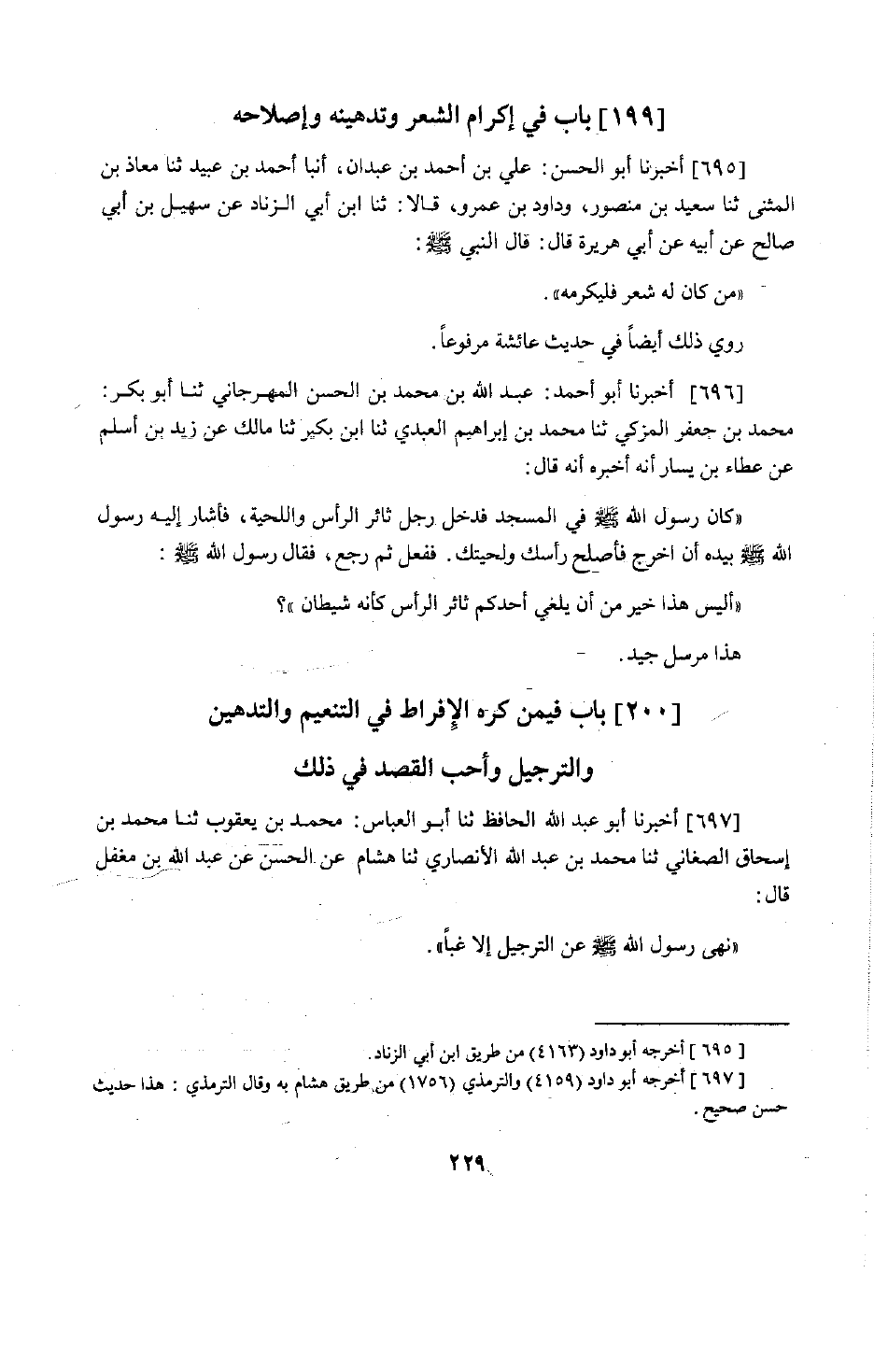 §بَابٌ فِي إِكْرَامِ الشَّعْرِ وَتَدْهِينِهِ وَإِصْلَاحِهِ