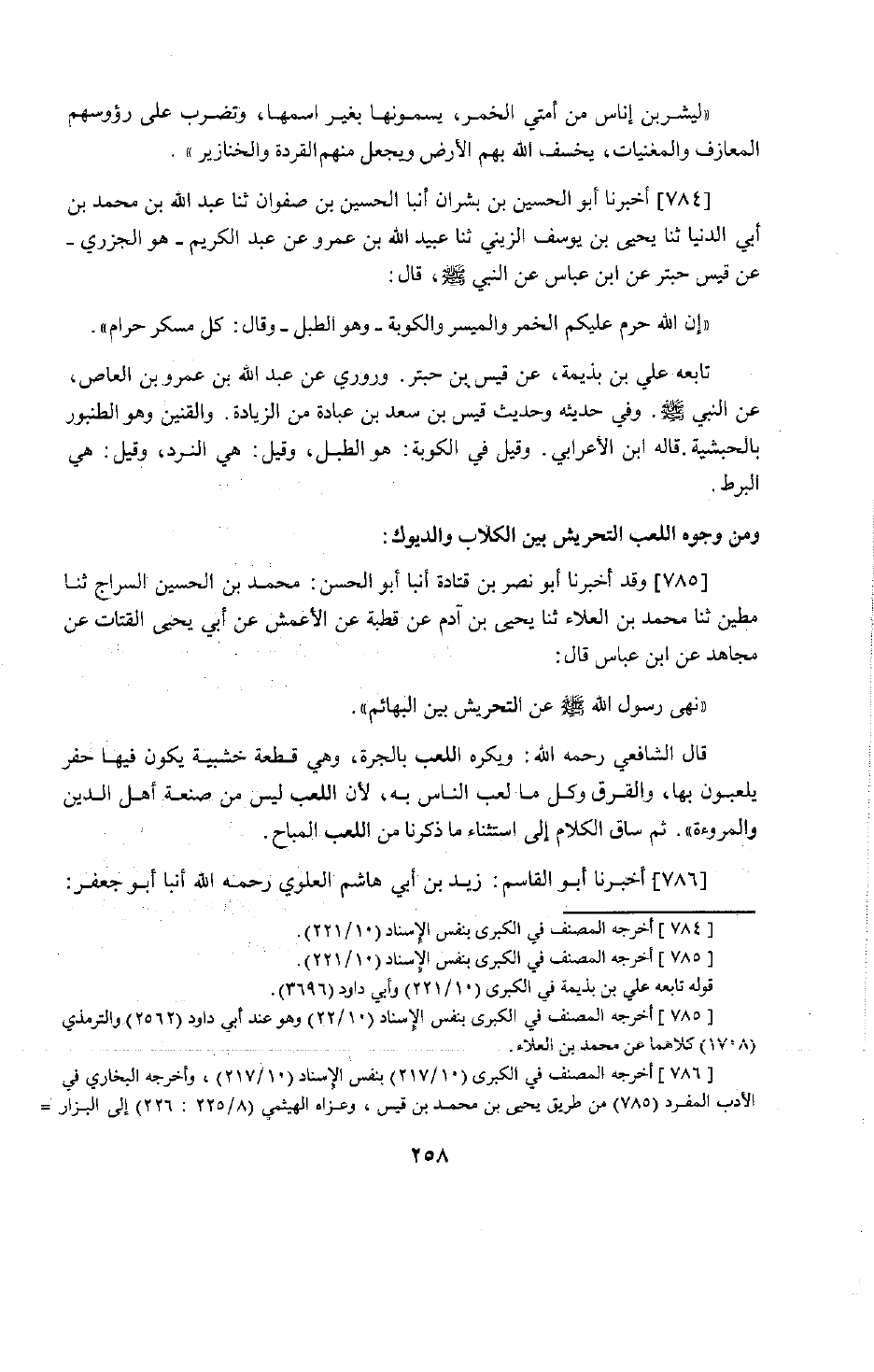 629 - وَقَدْ أَخْبَرَنَا أَبُو نَصْرِ بْنُ قَتَادَةَ، أَنْبَأَنَا أَبُو الْحَسَنِ مُحَمَّدُ بْنُ الْحُسَيْنِ السَّرَّاجُ، حَدَّثَنَا مُطَيَّنٌ، حَدَّثَنَا مُحَمَّدُ بْنُ الْعَلَاءِ، حَدَّثَنَا يَحْيَى بْنُ آدَمَ، عَنْ قُطْبَةَ، عَنِ الْأَعْمَشِ، عَنْ أَبِي يَحْيَى الْقَتَّاتِ، عَنْ مُجَاهِدٍ، عَنِ ابْنِ عَبَّاسٍ قَالَ: §نَهَى رَسُولُ اللَّهِ صَلَّى اللَّهُ عَلَيْهِ وَسَلَّمَ عَنِ التَّحْرِيشِ بَيْنَ الْبَهَائِمِ. قَالَ الشَّافِعِيُّ رَحِمَهُ اللَّهُ: وَيُكْرَهُ اللَّعِبُ بِالْجَرَّةِ، وَهِيَ قِطْعَةٌ خَشَبِيَّةٌ يَكُونُ فِيهَا حُفَرٌ يَلْعَبُونَ بِهَا، وَالْقَرَقُ وَكُلُّ مَا لَعِبَ النَّاسُ بِهِ، لِأَنَّ اللَّعِبَ لَيْسَ مِنْ صَنْعَةِ أَهْلِ الدِّينِ وَالْمُرُوءَةِ. ثُمَّ سَاقَ الْكَلَامَ إِلَى اسْتِثْنَاءِ مَا ذَكَرْنَا مِنَ اللَّعِبِ الْمُبَاحِ