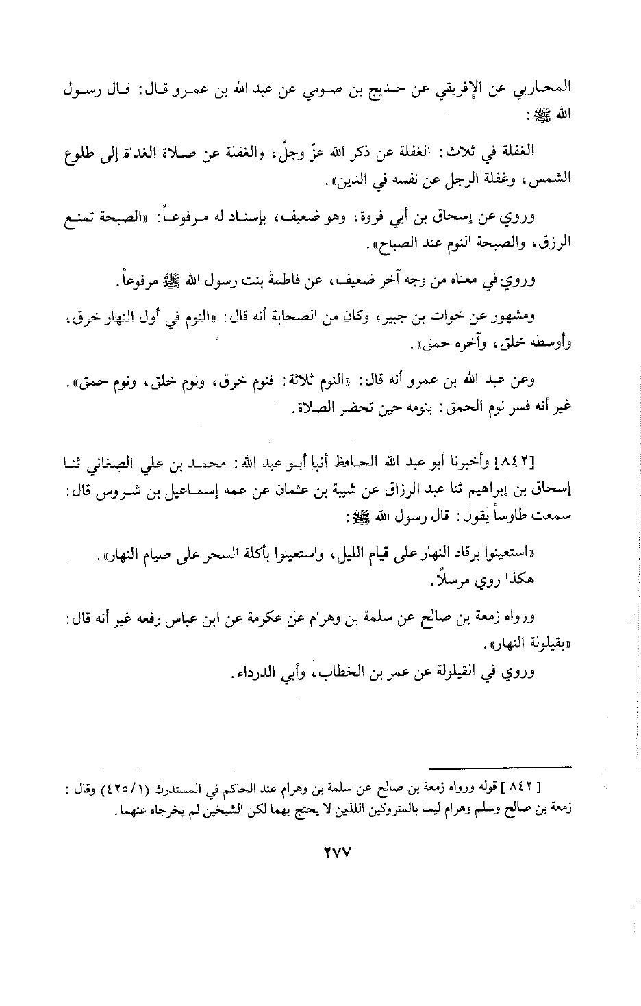 676 - وَأَخْبَرَنَا أَبُو عَبْدِ اللَّهِ الْحَافِظُ، أَنْبَأَنَا أَبُو عَبْدِ اللَّهِ مُحَمَّدُ بْنُ عَلِيٍّ الصَّغَانِيُّ، حَدَّثَنَا إِسْحَاقُ بْنُ إِبْرَاهِيمَ، حَدَّثَنَا عَبْدُ الرَّزَّاقِ، عَنْ شَيْبَةَ بْنِ عُثْمَانَ، عَنْ عَمِّهِ إِسْمَاعِيلَ بْنِ شَرُوسٍ قَالَ: سَمِعْتُ طَاوُسًا يَقُولُ: قَالَ رَسُولُ اللَّهِ صَلَّى اللَّهُ عَلَيْهِ وَسَلَّمَ: «§اسْتَعِينُوا بِرُقَادِ النَّهَارِ عَلَى قِيَامِ اللَّيْلِ، وَاسْتَعِينُوا بِأَكْلَةِ السَّحَرِ عَلَى صِيَامِ النَّهَارِ» . هَكَذَا رُوِيَ مُرْسَلًا، وَرَوَاهُ زَمْعَةُ بْنُ صَالِحٍ، عَنْ سَلَمَةَ بْنِ وَهْرَامَ، عَنْ عِكْرِمَةَ، عَنِ ابْنِ عَبَّاسٍ رَفَعَهُ، غَيْرَ أَنَّهُ قَالَ: «بِقَيْلُولَةِ النَّهَارِ» . وَرُوِيَ فِي الْقَيْلُولَةِ عَنْ عُمَرَ بْنِ الْخَطَّابِ، وَأَبِي الدَّرْدَاءِ