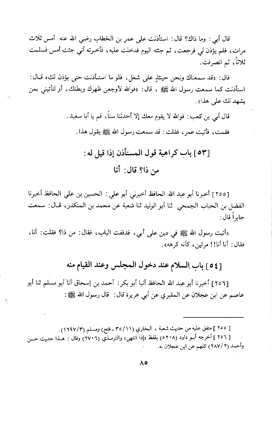 211 - أَخْبَرَنَا أَبُو عَبْدِ اللَّهِ الْحَافِظُ، أَخْبَرَنِي أَبُو عَلِيٍّ الْحُسَيْنُ بْنُ عَلِيٍّ الْحَافِظُ، أَخْبَرَنَا الْفَضْلُ بْنُ الْحُبَابِ الْجُمَحِيُّ، حَدَّثَنَا أَبُو الْوَلِيدِ، حَدَّثَنَا شُعْبَةُ، عَنْ مُحَمَّدِ بْنِ الْمُنْكَدِرِ قَالَ: سَمِعْتُ جَابِرًا قَالَ: وَأَتَيْتُ رَسُولَ اللَّهِ صَلَّى اللَّهُ عَلَيْهِ وَسَلَّمَ فِي دَيْنٍ عَلَى أَبِي، فَدَفَعْتُ الْبَابَ، فَقَالَ: «مَنْ ذَا؟» فَقُلْتُ: أَنَا، فَقَالَ: «§أَنَا أَنَا» مَرَّتَيْنِ، كَأَنَّهُ كَرِهَهُ