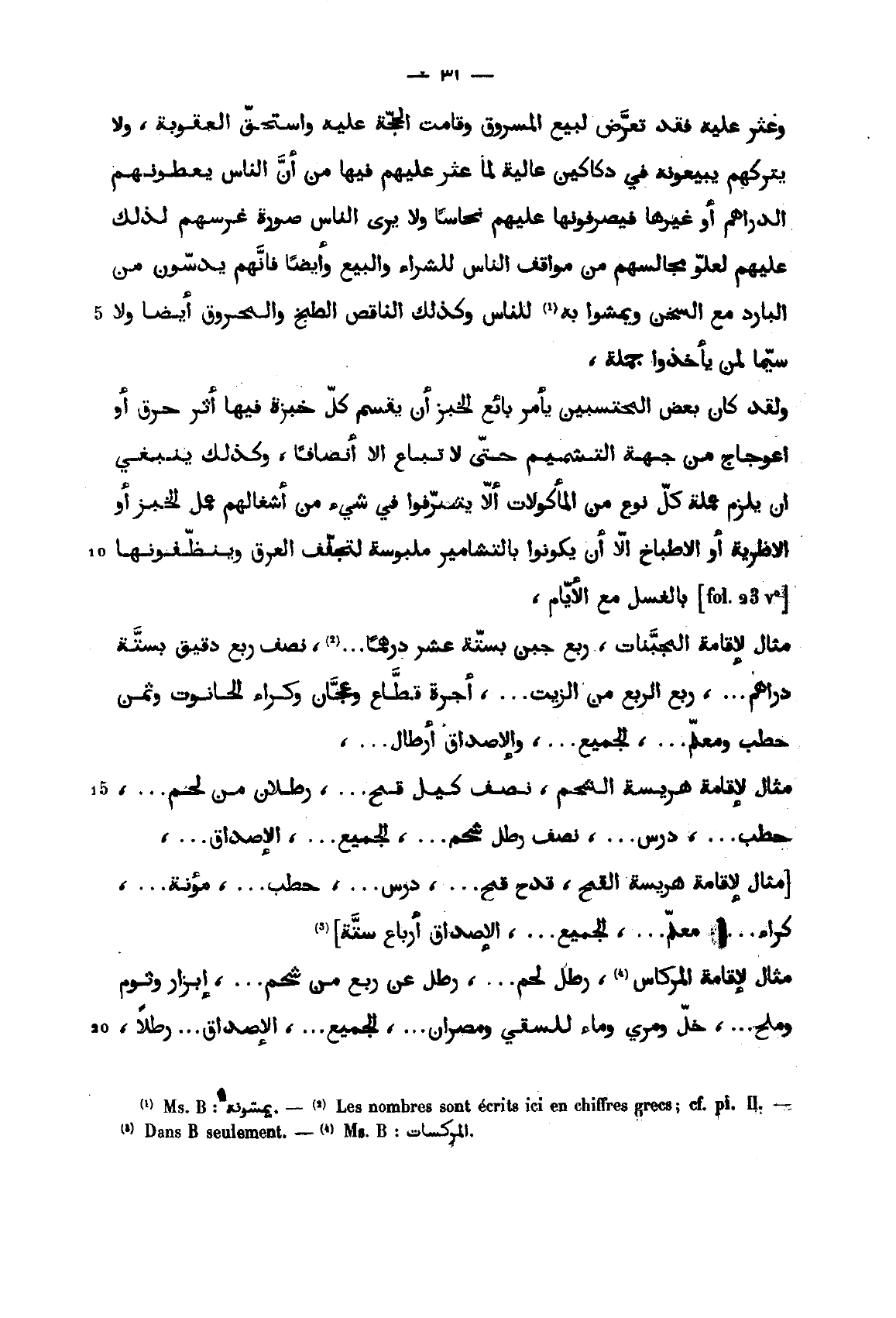 مثال لإقامة هريسة الشحم، نصف كيل قمح ... ، رطلان من لحم ... ، حطب ... ، درس ... ، نصف رطل شحم ... ، الجميع ... ، الإصداق ... .