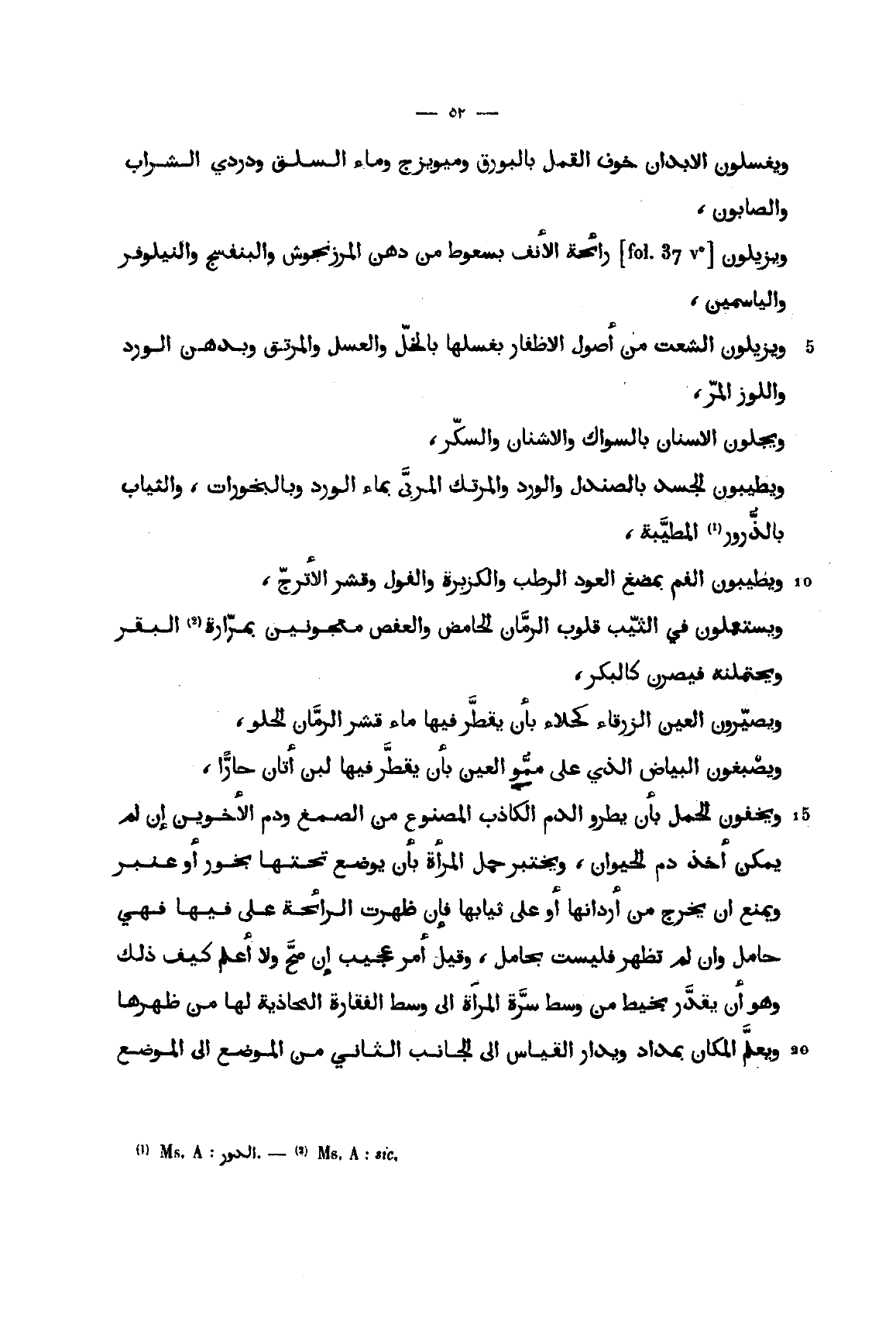 ويغسلون الأبدان خوف القمل بالبورق وميويزج وماء السلق ودردي الشراب والصابون، ويزيلون رائحة الأنف بسعوط من دهن المرزنجوزش والبنفسج والنيلوفر والياسمين، ويزيلون الشعت من أصول الأظفار بغسلها بالخل والعسل والمرتق وبدهن الورد واللوز المر.