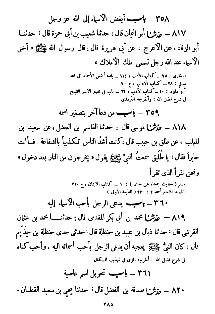 817 - حَدَّثَنَا أَبُو الْيَمَانِ قَالَ: حَدَّثَنَا شُعَيْبُ بْنُ أَبِي حَمْزَةَ قَالَ: حَدَّثَنَا أَبُو الزِّنَادِ، عَنِ الْأَعْرَجِ، عَنْ أَبِي هُرَيْرَةَ قَالَ: قَالَ رَسُولُ اللَّهِ صَلَّى اللهُ عَلَيْهِ وَسَلَّمَ: «§أَخْنَى الْأَسْمَاءِ عِنْدَ اللَّهِ رَجُلٌ تَسَمَّى مَلِكَ الْأَمْلَاكِ» Kصحيح