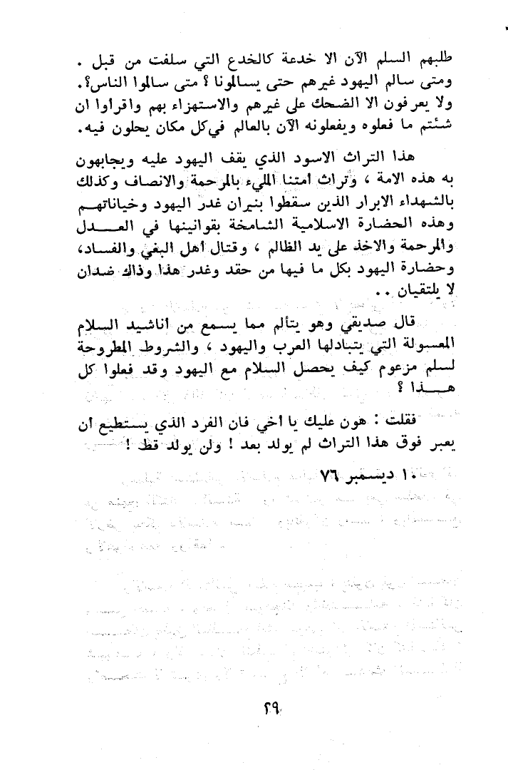 قال صديقي وهو يتألم مما يسمع من أناشيد السلام المعسولة التي يتبادلها العرب واليهود، والشروط المطروحة لسلم مزعوم كيف يحصل السلام مع اليهود وقد فعلوا كل هذا؟