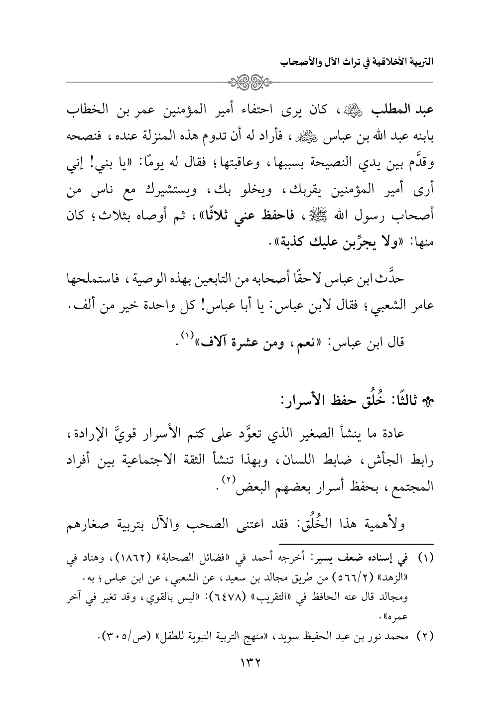 (¬٢) محمد نور بن عبدالحفيظ سويد، «منهج التربية النبوية للطفل» (ص/ ٣٠٥).