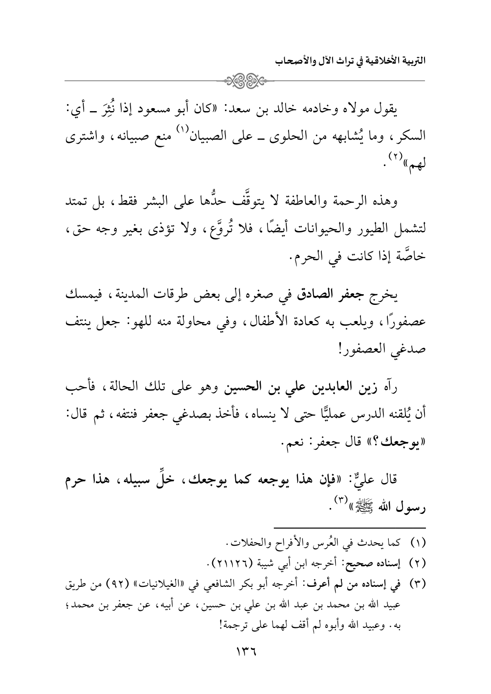 (¬٣) في إسناده من لم أعرف: أخرجه أبو بكر الشافعي في «الغيلانيات» (٩٢) من طريق عبيدالله بن محمد بن عبدالله بن علي بن حسين، عن أبيه، عن جعفر بن محمد؛ به. وعبيد الله وأبوه لم أقف لهما على ترجمة!