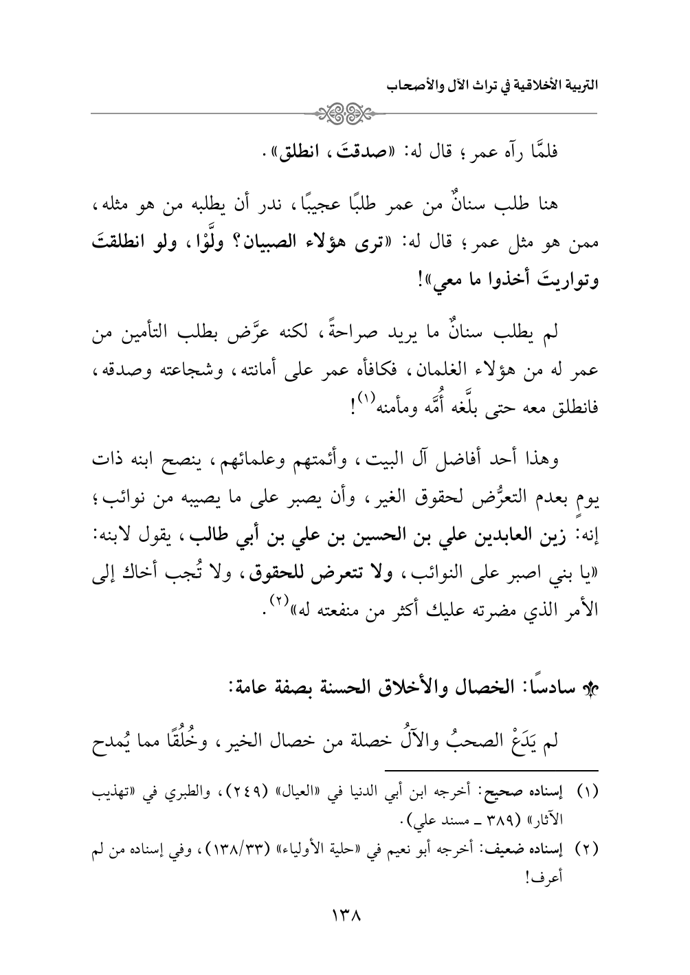 (¬١) إسناده صحيح: أخرجه ابن أبي الدنيا في «العيال» (٢٤٩)، والطبري في «تهذيب الآثار» (٣٨٩ - مسند علي).