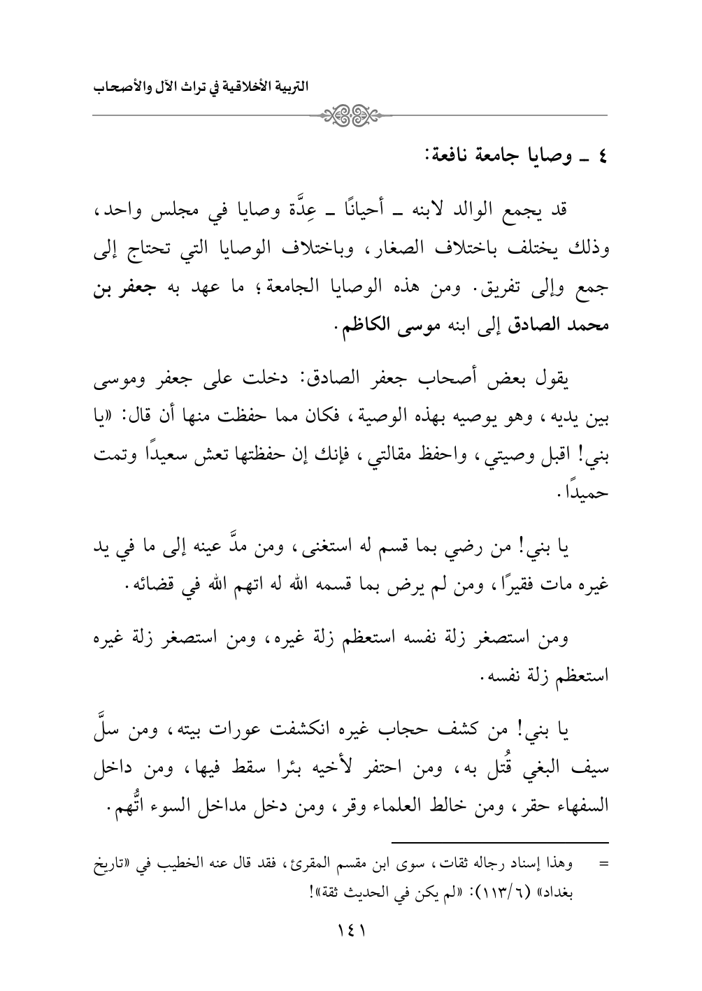 ٤ - وصايا جامعة نافعة: