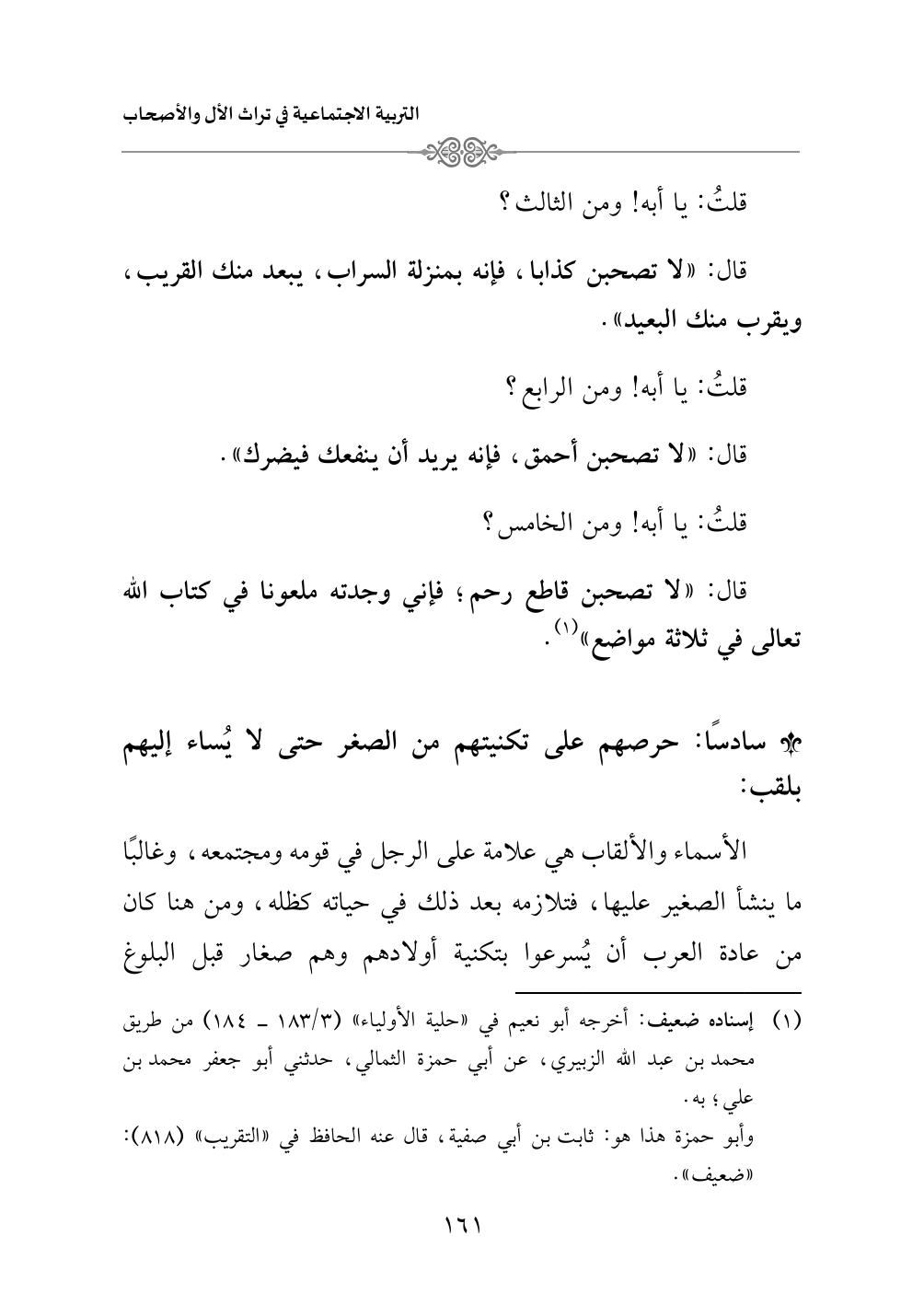 - سادسًا: حرصهم على تكنيتهم من الصغر حتى لا يُساء إليهم بلقب: