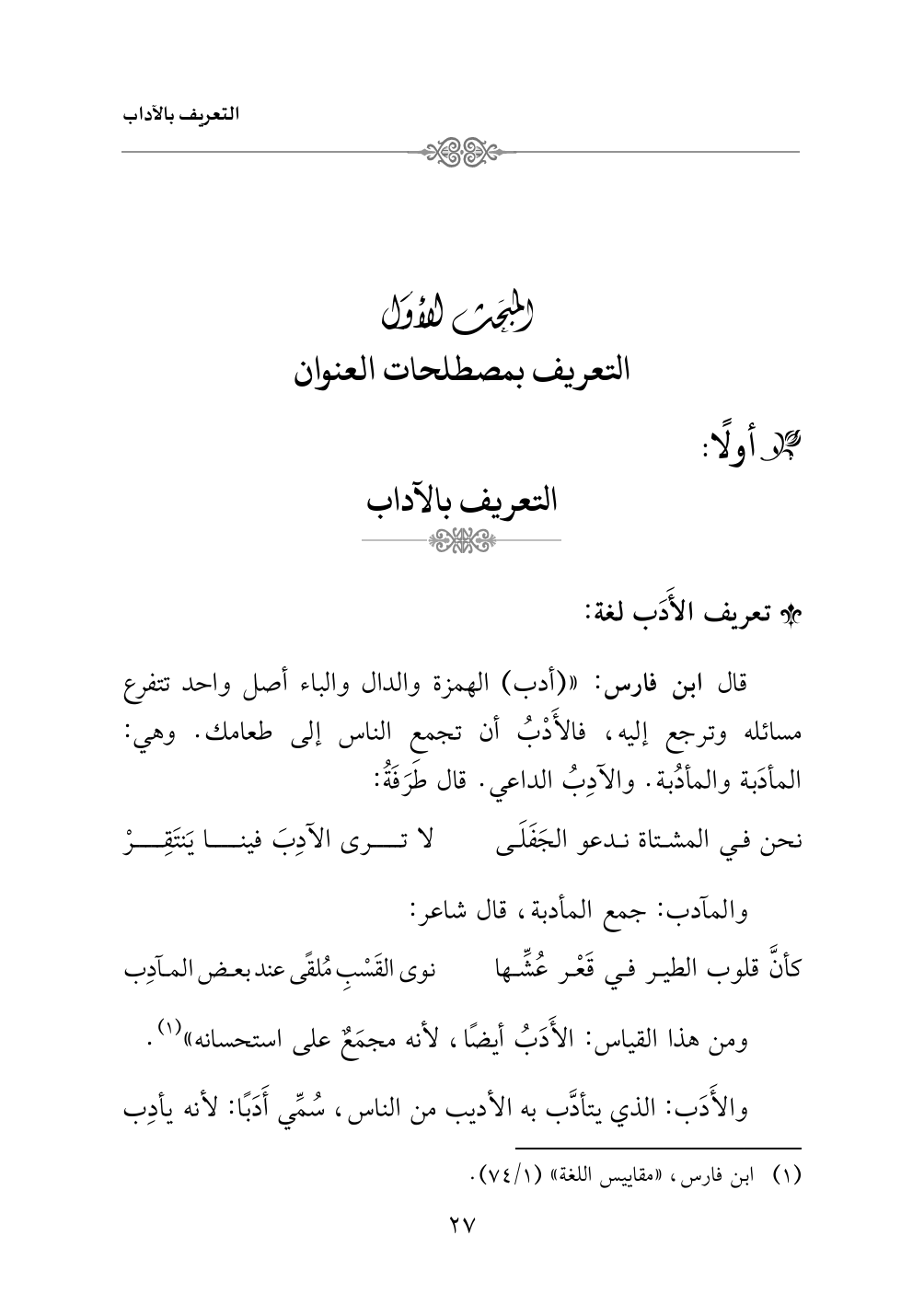 أولًا: التعريف بالآداب