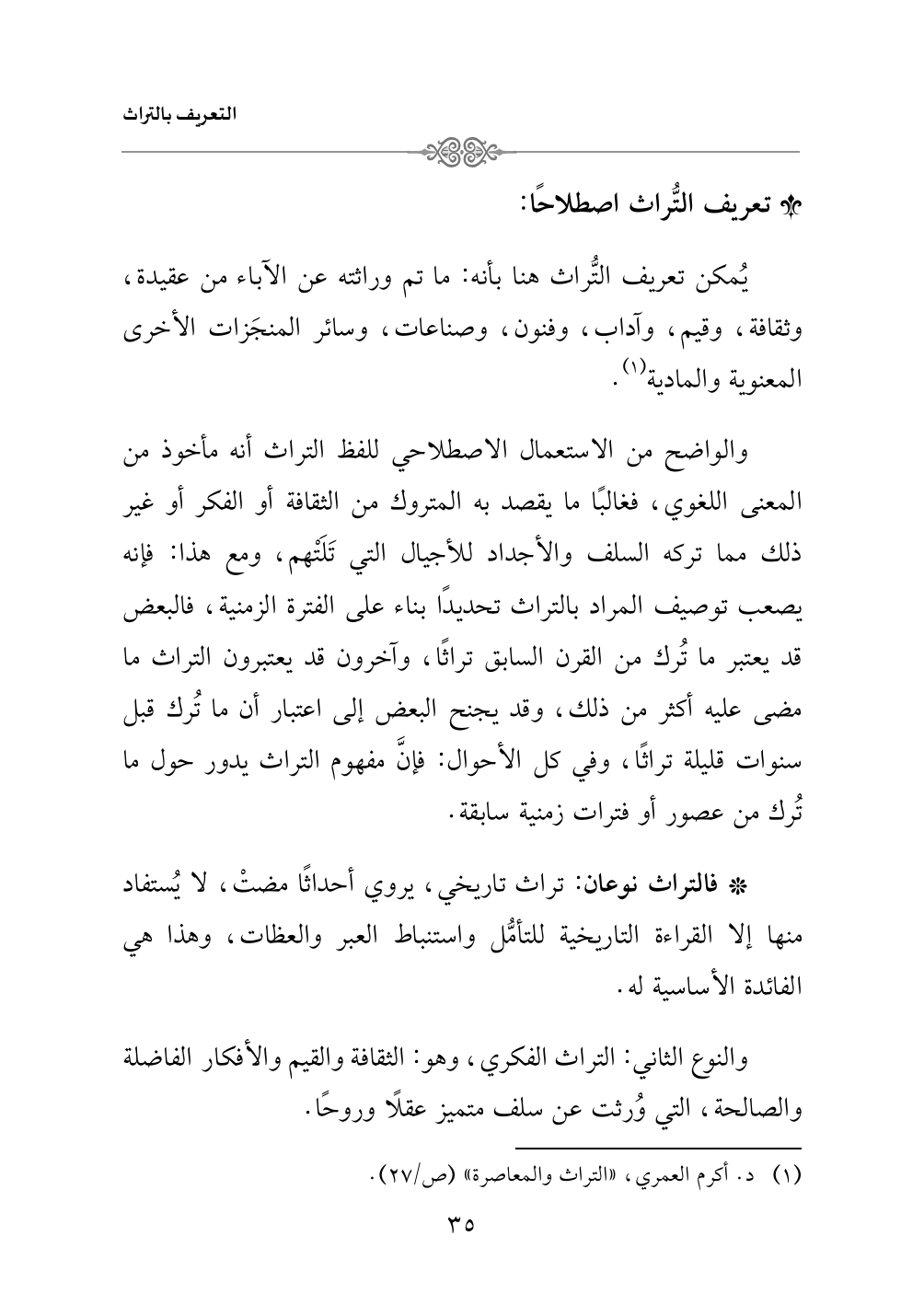 (¬١) د. أكرم العمري، «التراث والمعاصرة» (ص/ ٢٧).