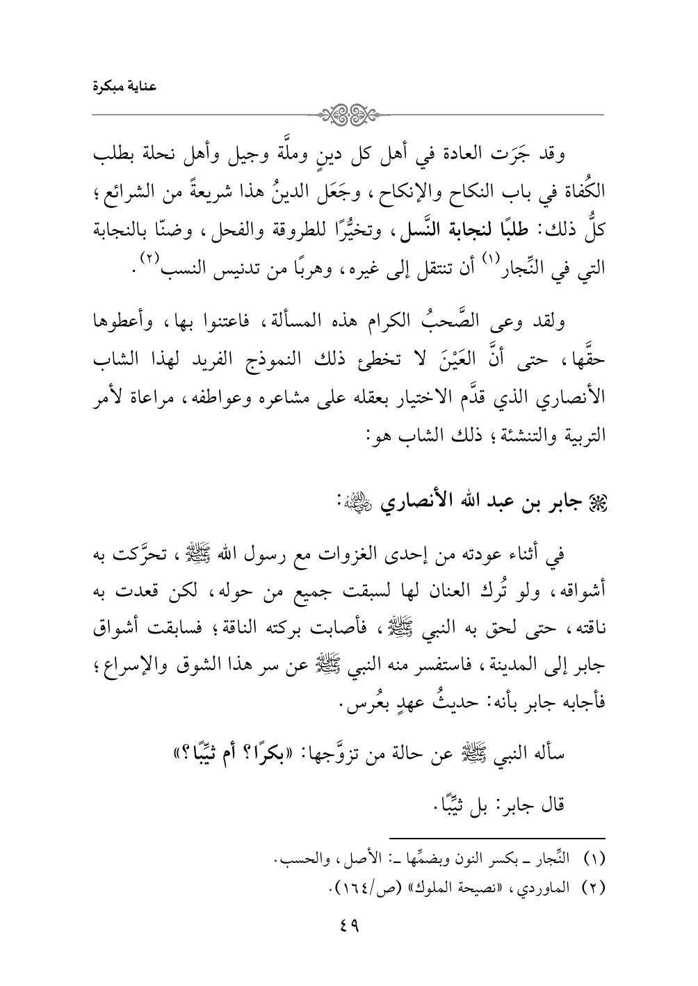 وقد جَرَت العادة في أهل كل دينٍ وملَّة وجيل وأهل نحلة بطلب الكُفاة في باب النكاح والإنكاح، وجَعَل الدينُ هذا شريعةً من الشرائع؛ كلُّ ذلك: طلبًا لنجابة النَّسل، وتخيُّرًا للطروقة والفحل، وضنّا بالنجابة التي في النِّجار (¬١) أن تنتقل إلى غيره، وهربًا من تدنيس النسب (¬٢).