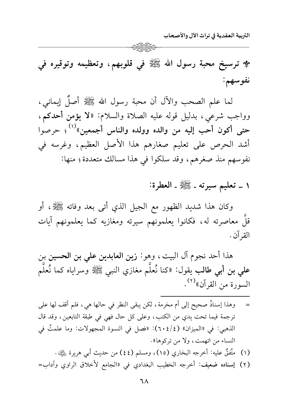١ - تعليم سيرته - صلى الله عليه وسلم - العطرة: