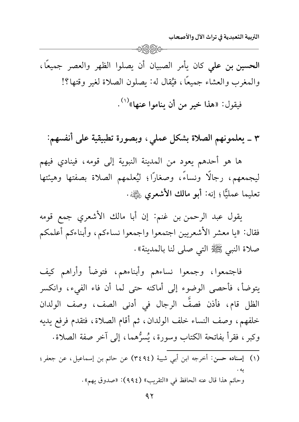 ٣ - يعلمونهم الصلاة بشكل عملي، وبصورة تطبيقية على أنفسهم:
