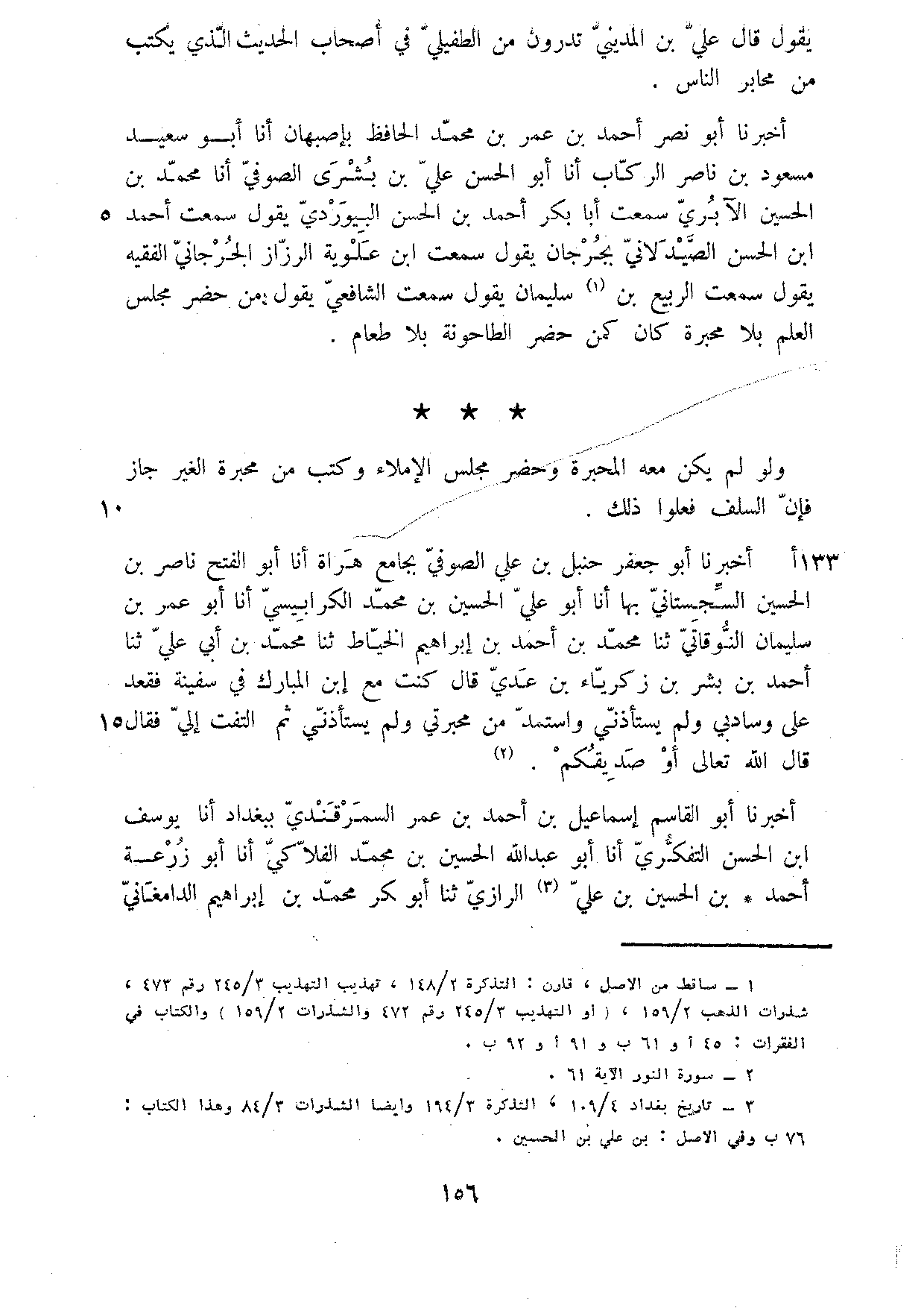 أَخْبَرَنَا أَبُو نَصْرٍ أَحْمَدُ بْنُ عُمَرَ بْنِ مُحَمَّدٍ الْحَافِظُ بِأَصْبَهَانَ أناأبو سَعِيدٍ مَسْعُودُ بْنُ نَاصِرٍ الرَّكَّابُ أَنا أَبُو الْحَسَنِ عَلِيُّ بْنُ بُشْرَى الصُّوفِيُّ أَنا مُحَمَّدُ بْنُ الْحُسَيْنِ الآبُرِيُّ سَمِعْتُ أَبَا بَكْرٍ أَحْمَدَ بْنَ الْحَسَنِ الْبِيُوَرْدِيَّ يَقُولُ سَمِعْتُ أَحْمَدَ بْنَ الْحَسَنِ الصَّيْدَلانِيَّ بجرجان يَقُول سَمِعت بن عَلْوِيَةَ الرَّزَّازَ الْجُرْجَانِيَّ الْفَقِيهَ يَقُولُ سَمِعْتُ الرَّبِيعَ بْنَ سُلَيْمَانَ يَقُولُ سَمِعْتُ الشَّافِعِيَّ يَقُولُ مَنْ حَضَرَ مَجْلِسَ الْعِلْمِ بِلا مَحْبَرَةٍ كَانَ كَمَنْ حَضَرَ الطَّاحُونَةَ بِلا طَعَامٍ وَلَوْ لَمْ يَكُنْ مَعَهُ الْمَحْبَرَةُ وَحَضَرَ مَجْلِسَ الإِمْلاءِ وَكَتَبَ مِنْ مَحْبَرَةِ الْغَيْرِ جَازَ فَإِنَّ السَّلَفَ فَعَلُوا ذَلِكَ