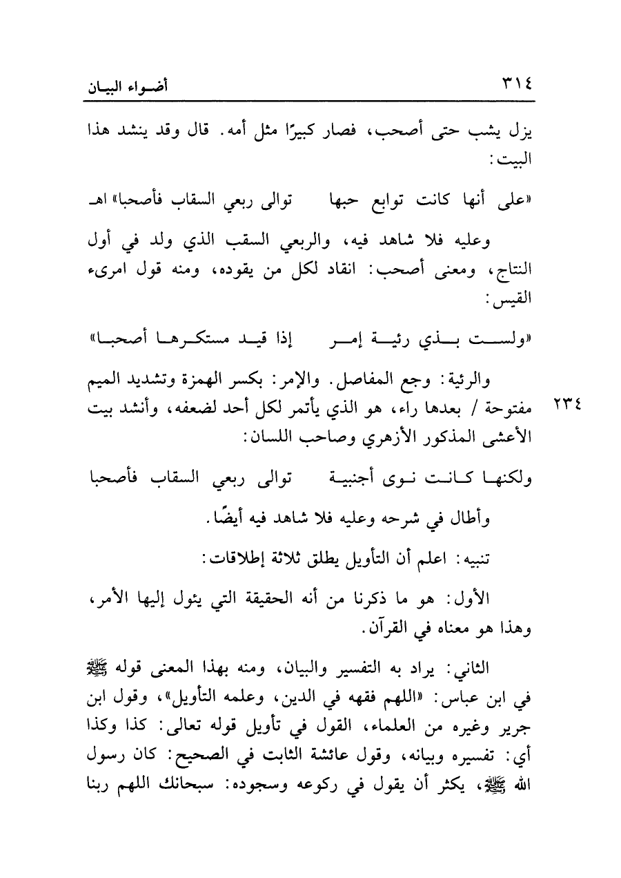 "على أنها كانت توابع حبها ... توالي ربعي السقاب فأصحبا"اهـ