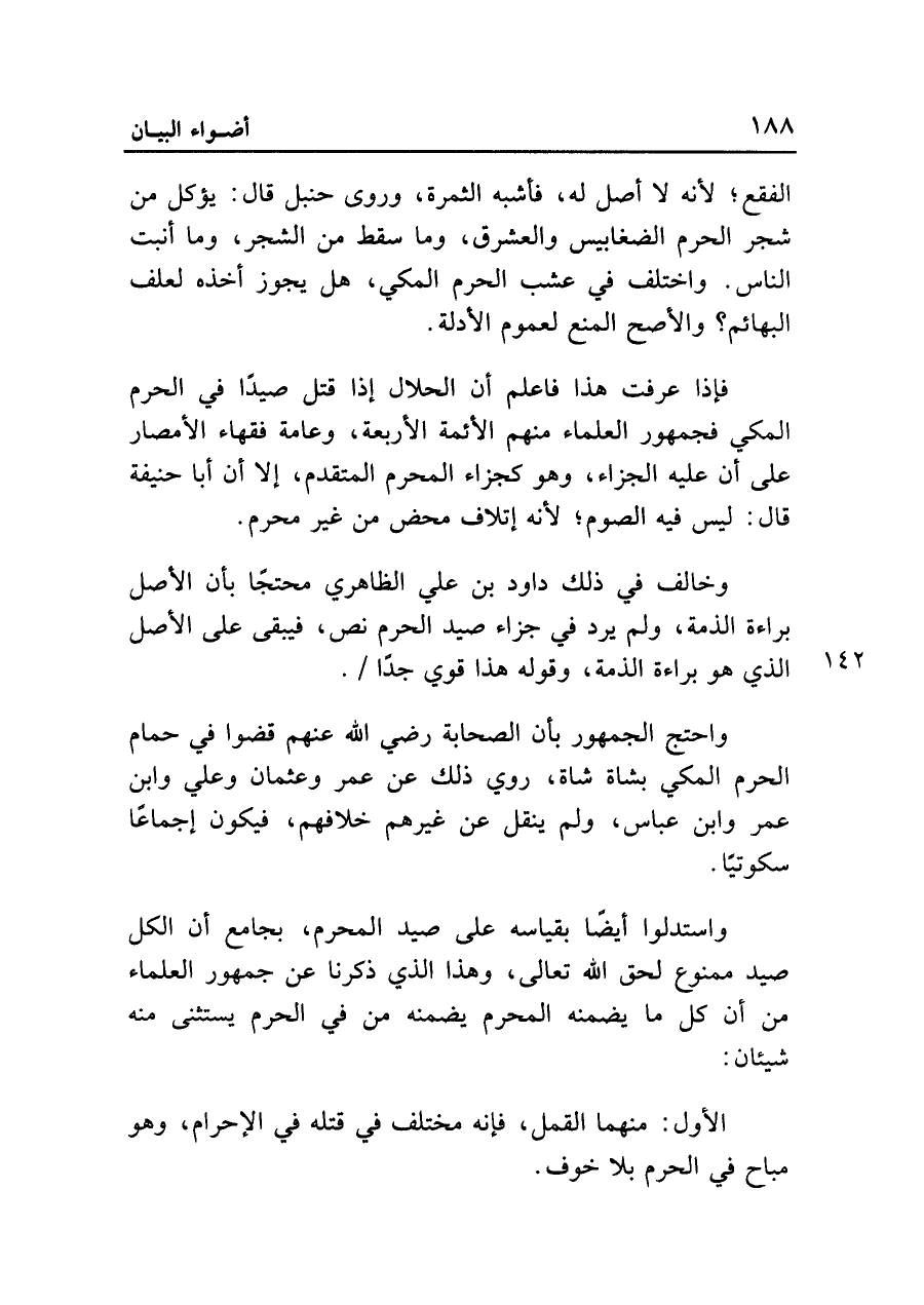 واستدلوا أيضاً بقياسه على صيد المحرم، بجامع أن الكل صيد ممنوع لحق الله تعالى، وهذا الذي ذكرنا عن جمهور العلماء من أن كل ما يضمنه المحرم يضمنه من في الحرم يستثنى منه شيئان: