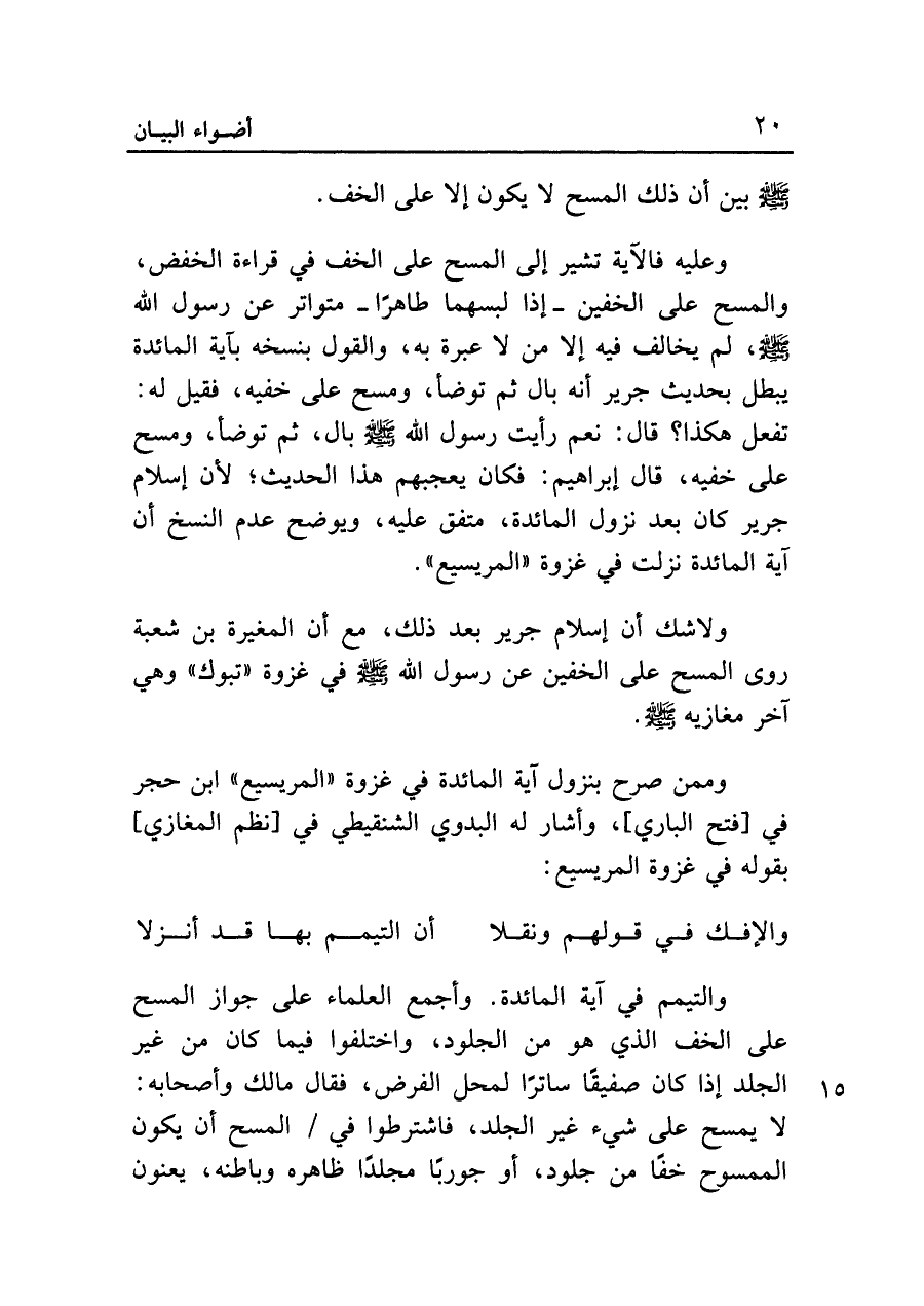 وممن صرح بنزول آية المائدة في غزوة "المريسيع" ابن حجر في [فتح الباري]، وأشار له البدوي الشنقيطي في [نظم المغازي] بقوله في غزوة المريسيع: