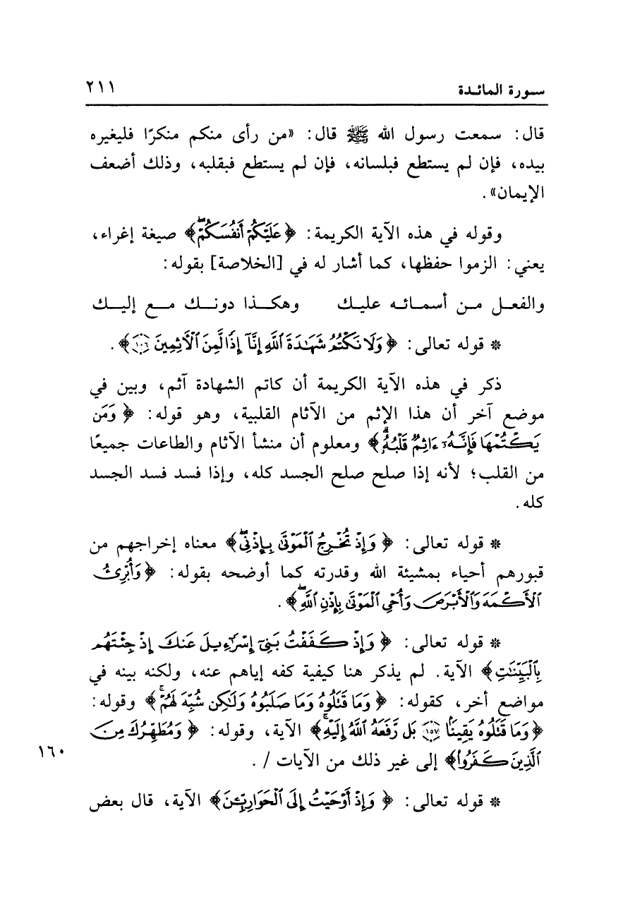 • قوله تعالى: {وَلا نَكْتُمُ شَهَادَةَ اللَّهِ إِنَّا إِذاً لَمِنَ الْآثِمِينَ (١٠٦)}.