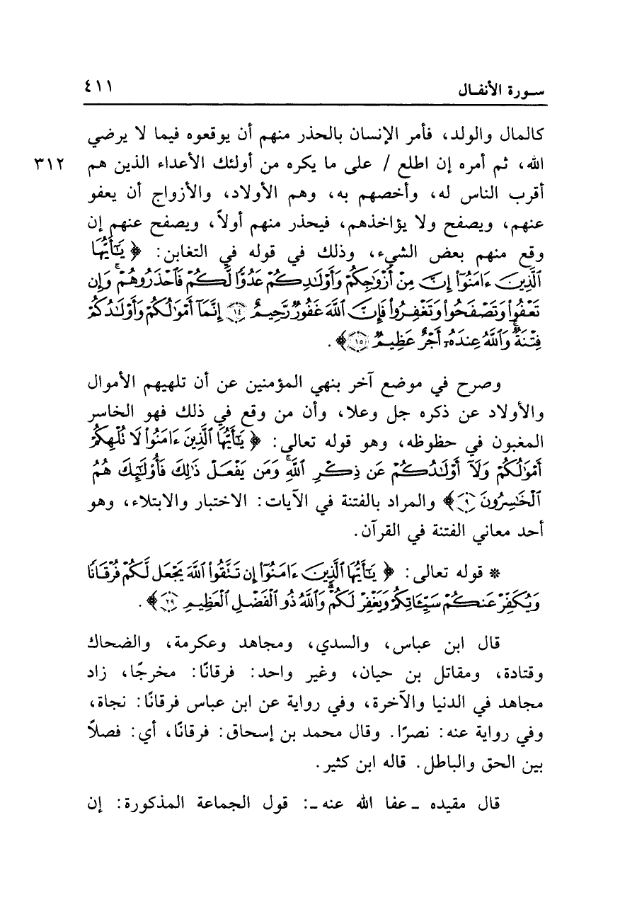 • قوله تعالى: {يَا أَيُّهَا الَّذِينَ آمَنُوا إِنْ تَتَّقُوا اللَّهَ يَجْعَلْ لَكُمْ فُرْقَاناً وَيُكَفِّرْ عَنْكُمْ سَيِّئَاتِكُمْ وَيَغْفِرْ لَكُمْ وَاللَّهُ ذُو الْفَضْلِ الْعَظِيمِ (٢٩)}.