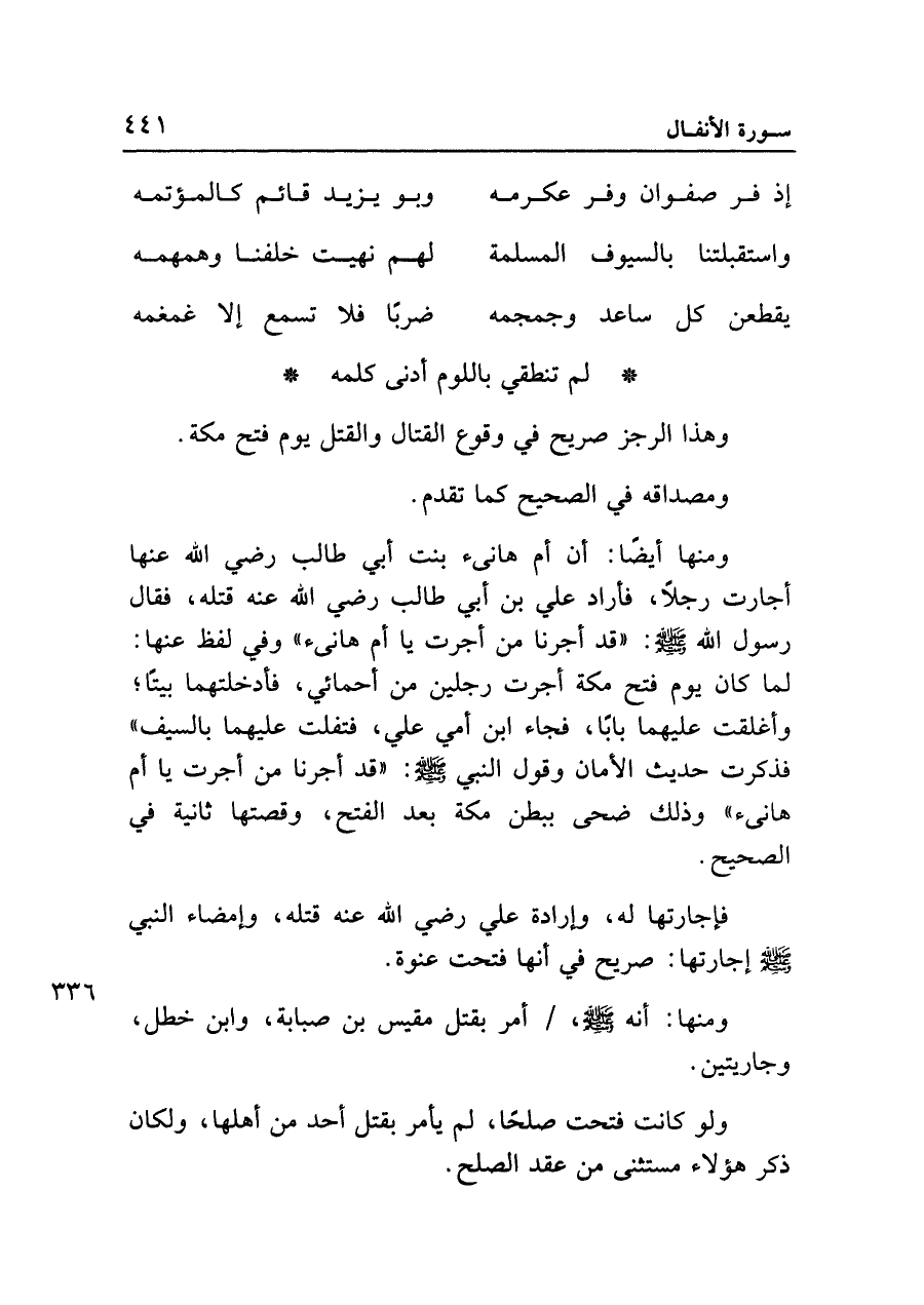 فإجارتها له، وإرادة علي رضي الله عنه قتله، وإمضاء النَّبي - صلى الله عليه وسلم - إجارتها: صريح في أنها فتحت عنوة.