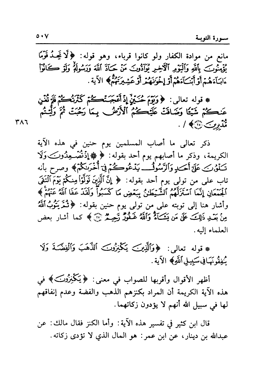 في قوله تعالى: {وَالَّذِينَ يَكْنِزُونَ الذَّهَبَ وَالْفِضَّةَ وَلَا يُنْفِقُونَهَا فِي سَبِيلِ اللَّهِ} الآية.