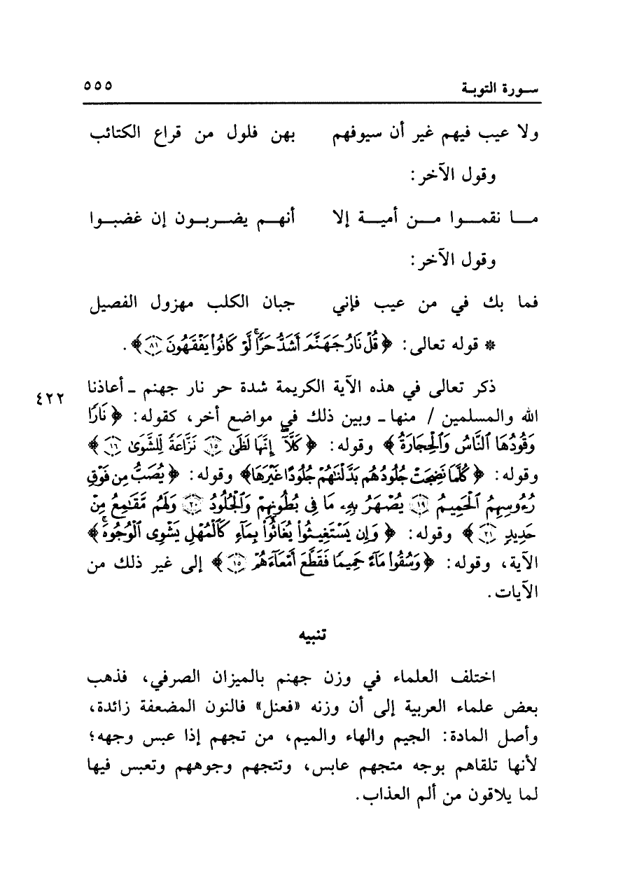 • قوله تعالى: {قُلْ نَارُ جَهَنَّمَ أَشَدُّ حَرًّا لَوْ كَانُوا يَفْقَهُونَ (٨١)}.