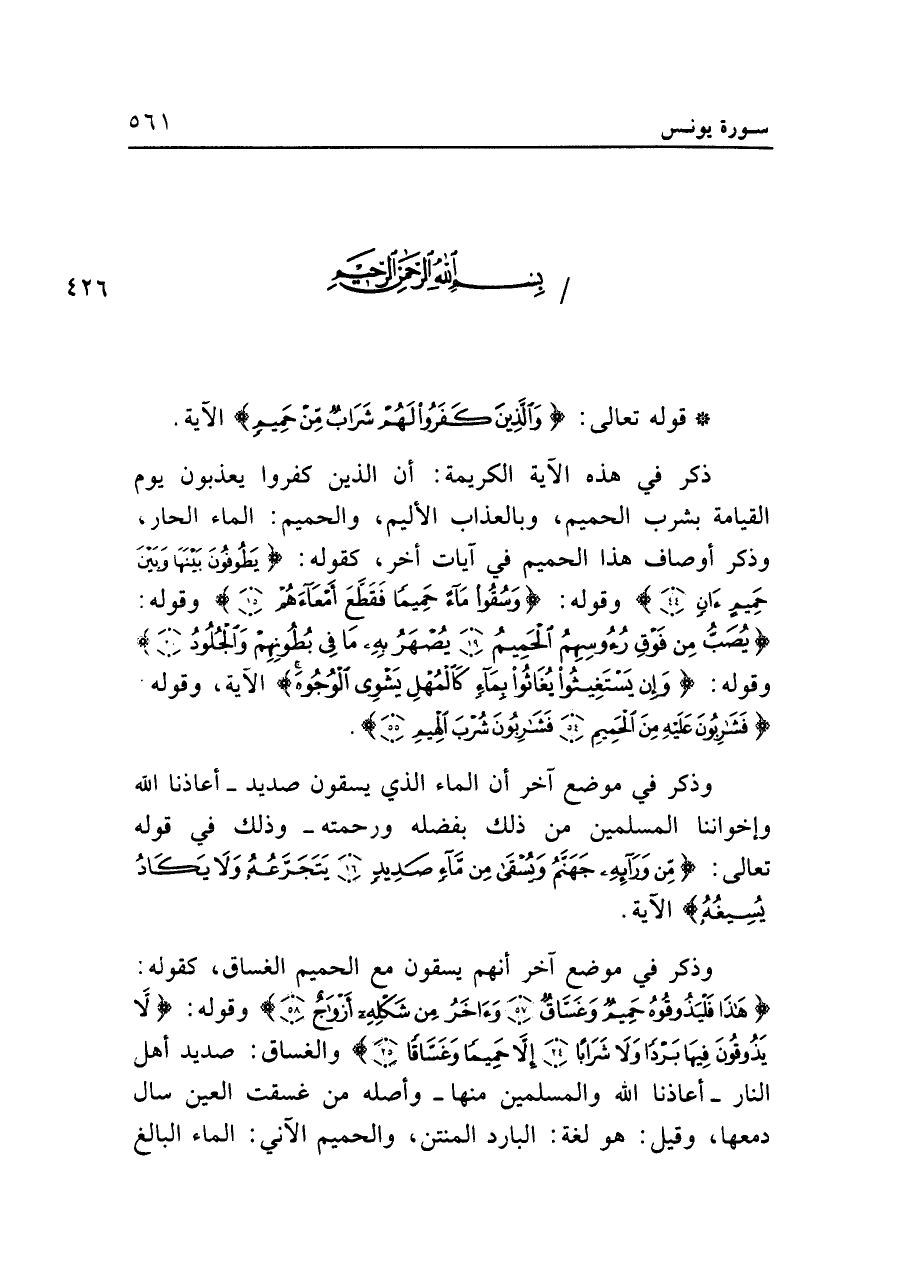 • قوله تعالى: {وَالَّذِينَ كَفَرُوا لَهُمْ شَرَابٌ مِنْ حَمِيمٍ} الآية.