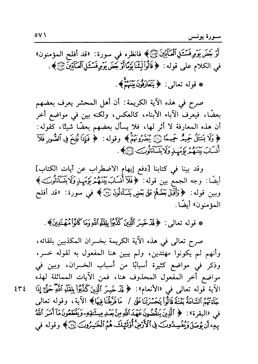 وقد بينا في كتابنا [دفع إيهام الاضطراب عن آيات الكتاب] أيضًا: وجه الجمع بين قوله: {فَلَا أَنْسَابَ بَيْنَهُمْ يَوْمَئِذٍ وَلَا يَتَسَاءَلُونَ} وبين قوله: {وَأَقْبَلَ بَعْضُهُمْ عَلَى بَعْضٍ يَتَسَاءَلُونَ (٢٧)} في سورة: "قَدْ أَفْلَحَ الْمُؤْمِنُونَ" أيضًا.