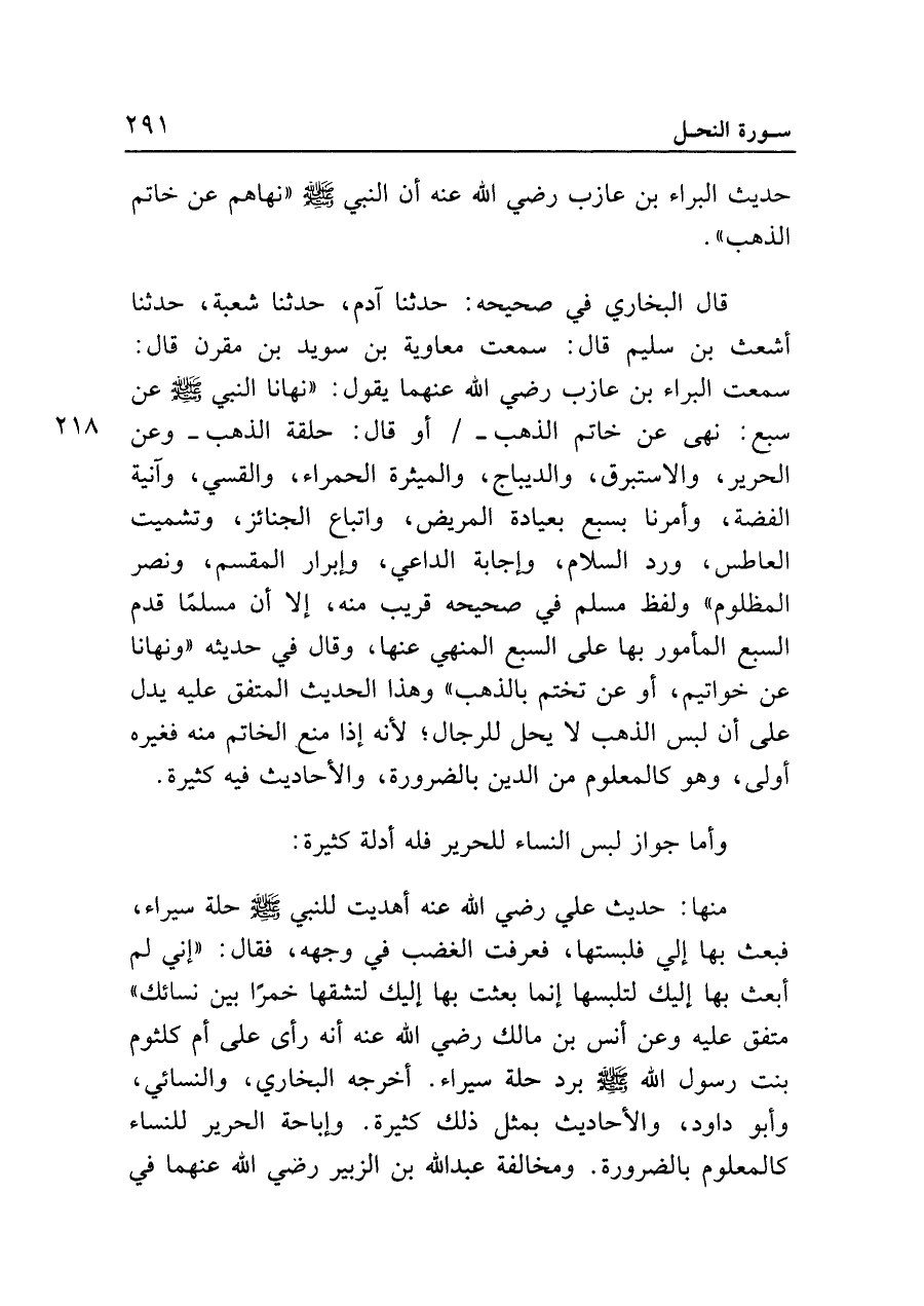 حديث البراء بن عازب رضي الله عنه أن النبي - صلى الله عليه وسلم - "نهاهم عن خاتم الذهب".