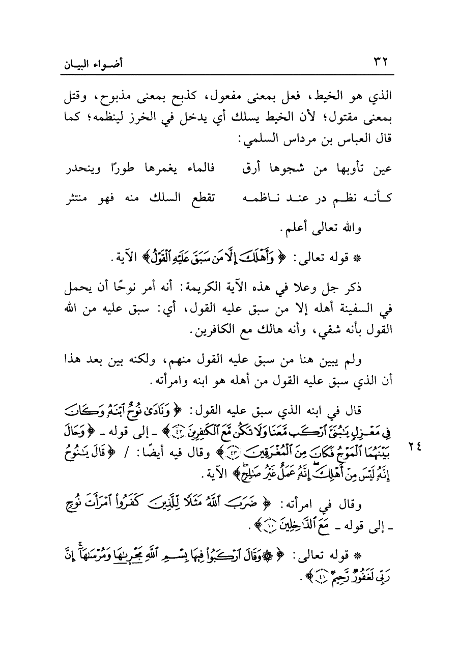 • قوله تعالى: {وَأَهْلَكَ إِلَّا مَنْ سَبَقَ عَلَيْهِ الْقَوْلُ} الآية.
