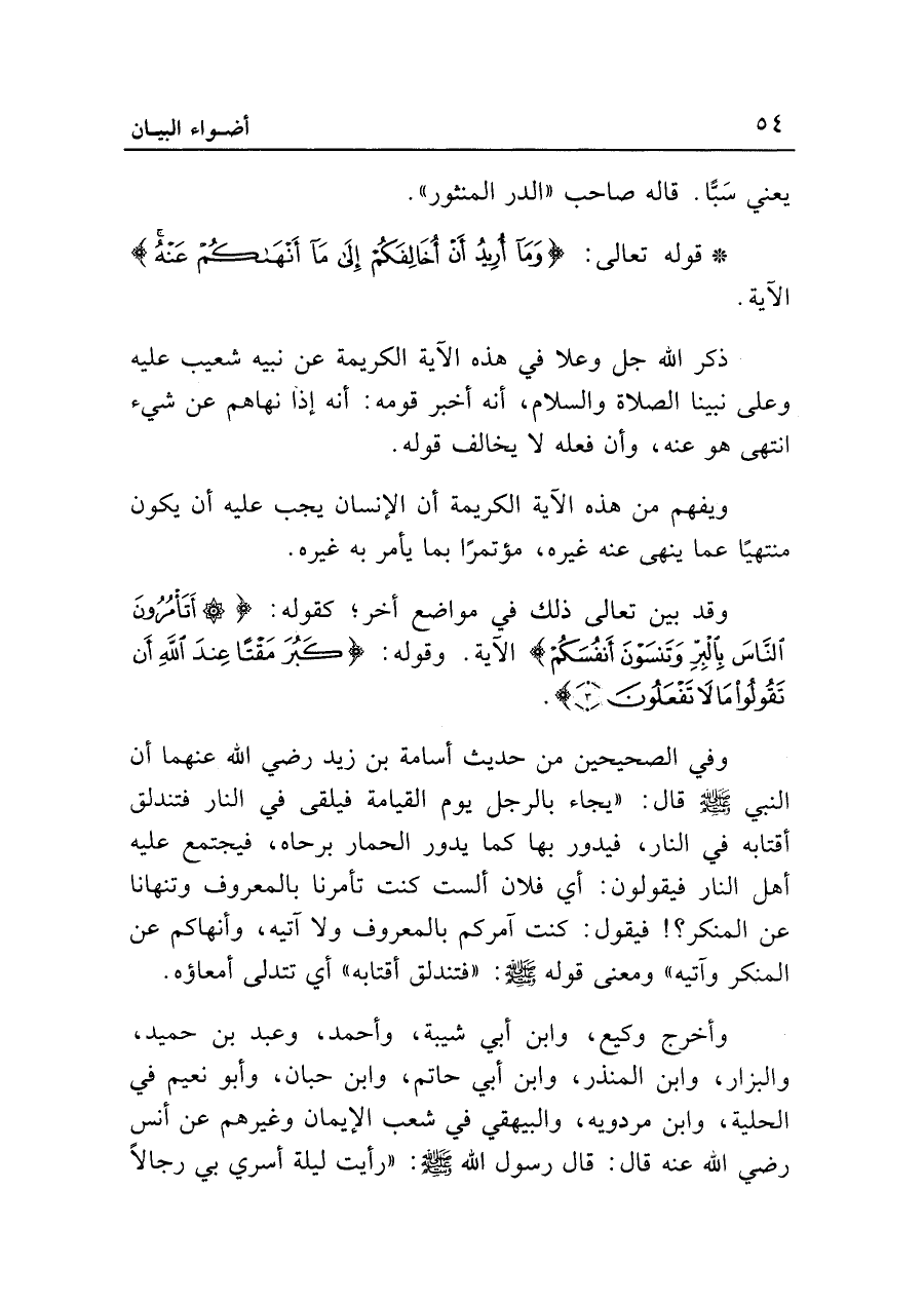 • قوله تعالى: {وَمَا أُرِيدُ أَنْ أُخَالِفَكُمْ إِلَى مَا أَنْهَاكُمْ عَنْهُ} الآية.