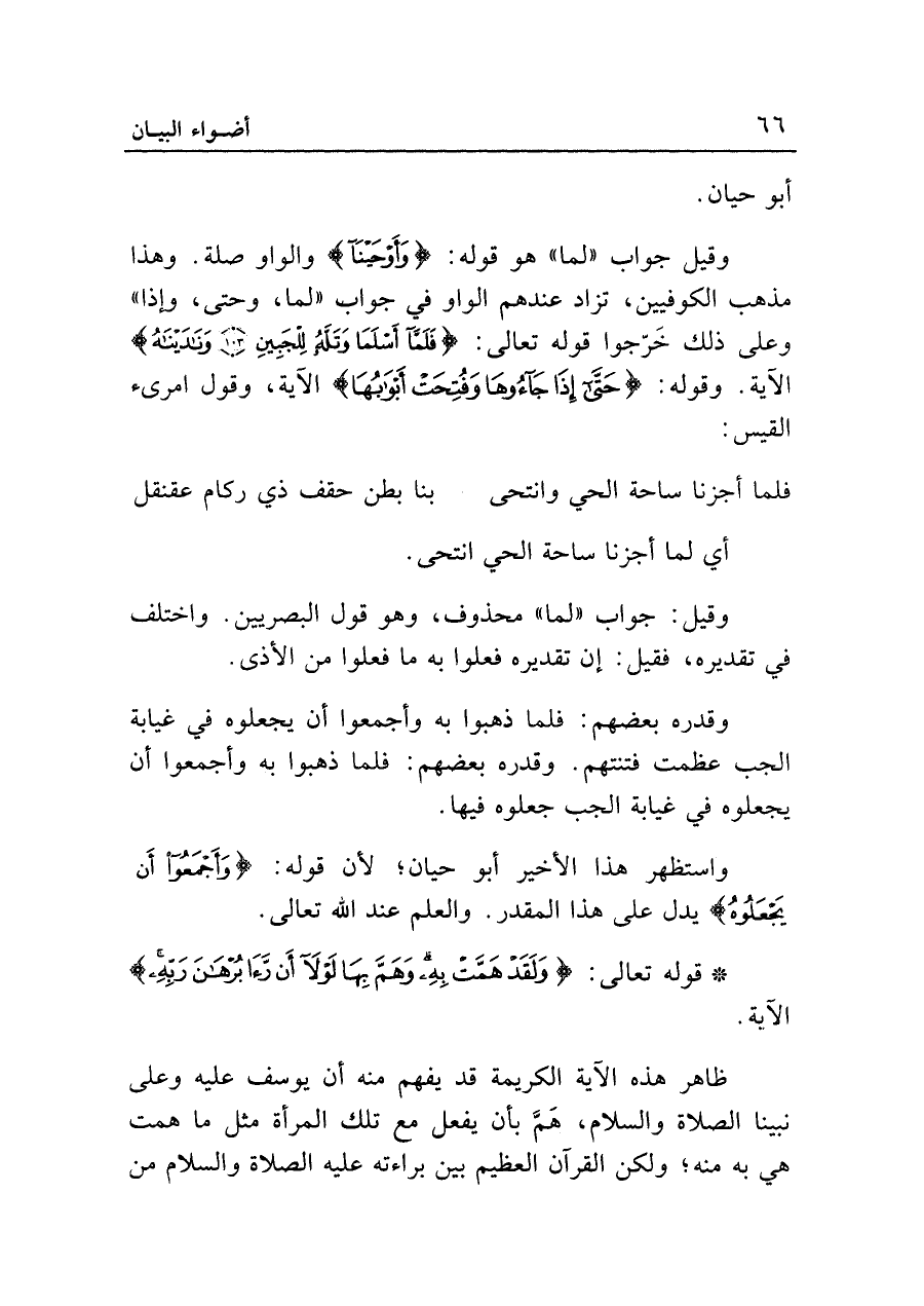 • قوله تعالى: {وَلَقَدْ هَمَّتْ بِهِ وَهَمَّ بِهَا لَوْلَا أَنْ رَأَى بُرْهَانَ رَبِّهِ} الآية.