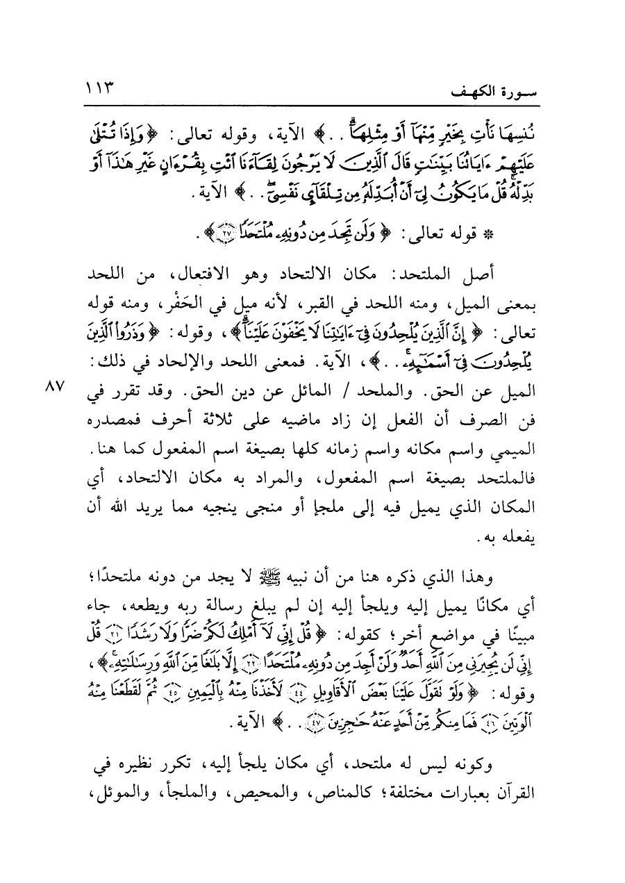 • قوله تعالى: {وَلَنْ تَجِدَ مِنْ دُونِهِ مُلْتَحَدًا (٢٧)}.