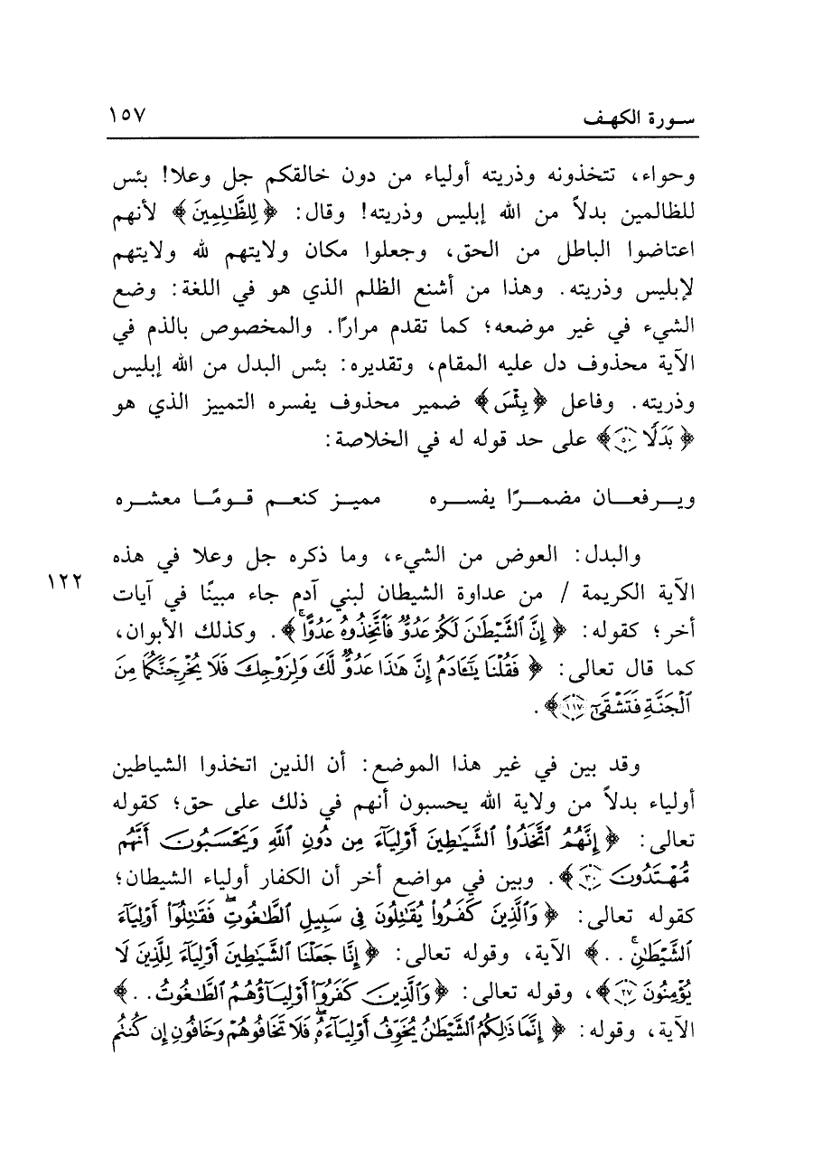 والبدل: العوض من الشيء، وما ذكره جل وعلا في هذه الآية الكريمة من عداوة الشيطان لبني آدم جاء مبينًا في آيات أخر؛ كقوله: {إِنَّ الشَّيطَانَ لَكُمْ عَدُوٌّ فَاتَّخِذُوهُ عَدُوًّا} . وكذلك الأبوان، كما قال تعالى: {فَقُلْنَا يَاآدَمُ إِنَّ هَذَا عَدُوٌّ لَكَ وَلِزَوْجِكَ فَلَا يُخْرِجَنَّكُمَا مِنَ الْجَنَّةِ فَتَشْقَى (١١٧)} .